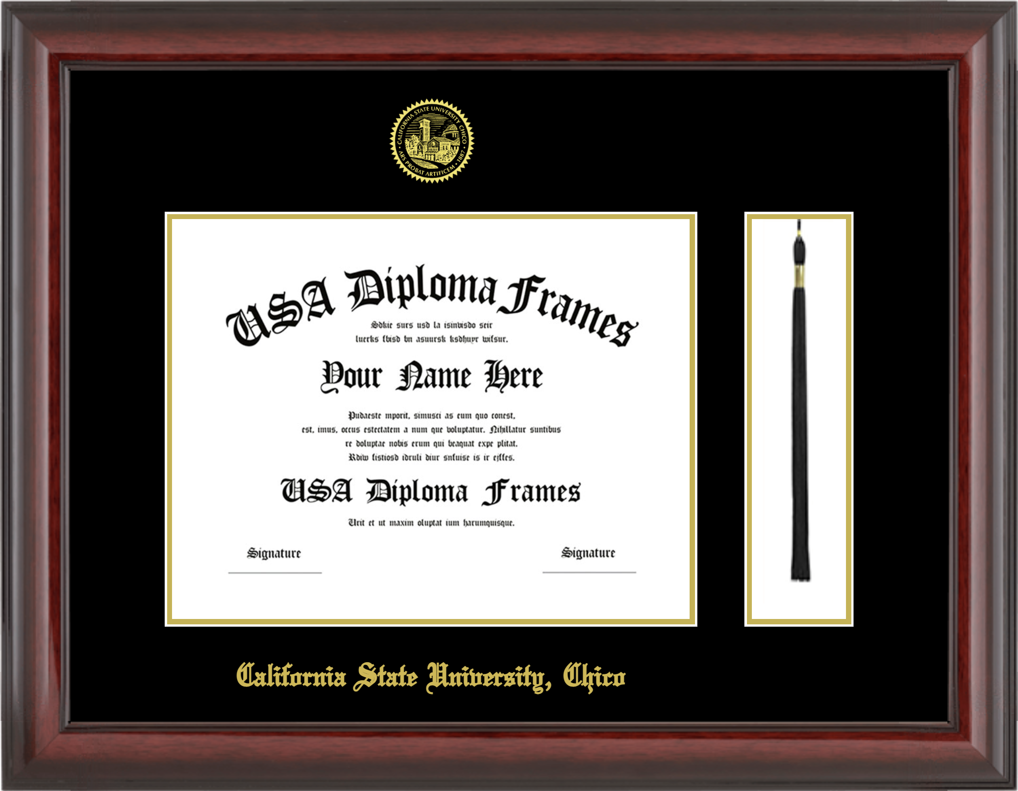 California State University, Chico Diploma Frame with Tassel – Cherry Mahogany Glossy – Black and Gold Mat