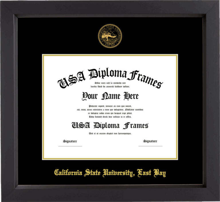 Want to explore more styles? Browse our full range of diploma frame layouts, or visit the California State University, East Bay to view options available for your school. Looking for a fully personalized design? Try our custom Frame Builder and create a frame that’s uniquely yours.
