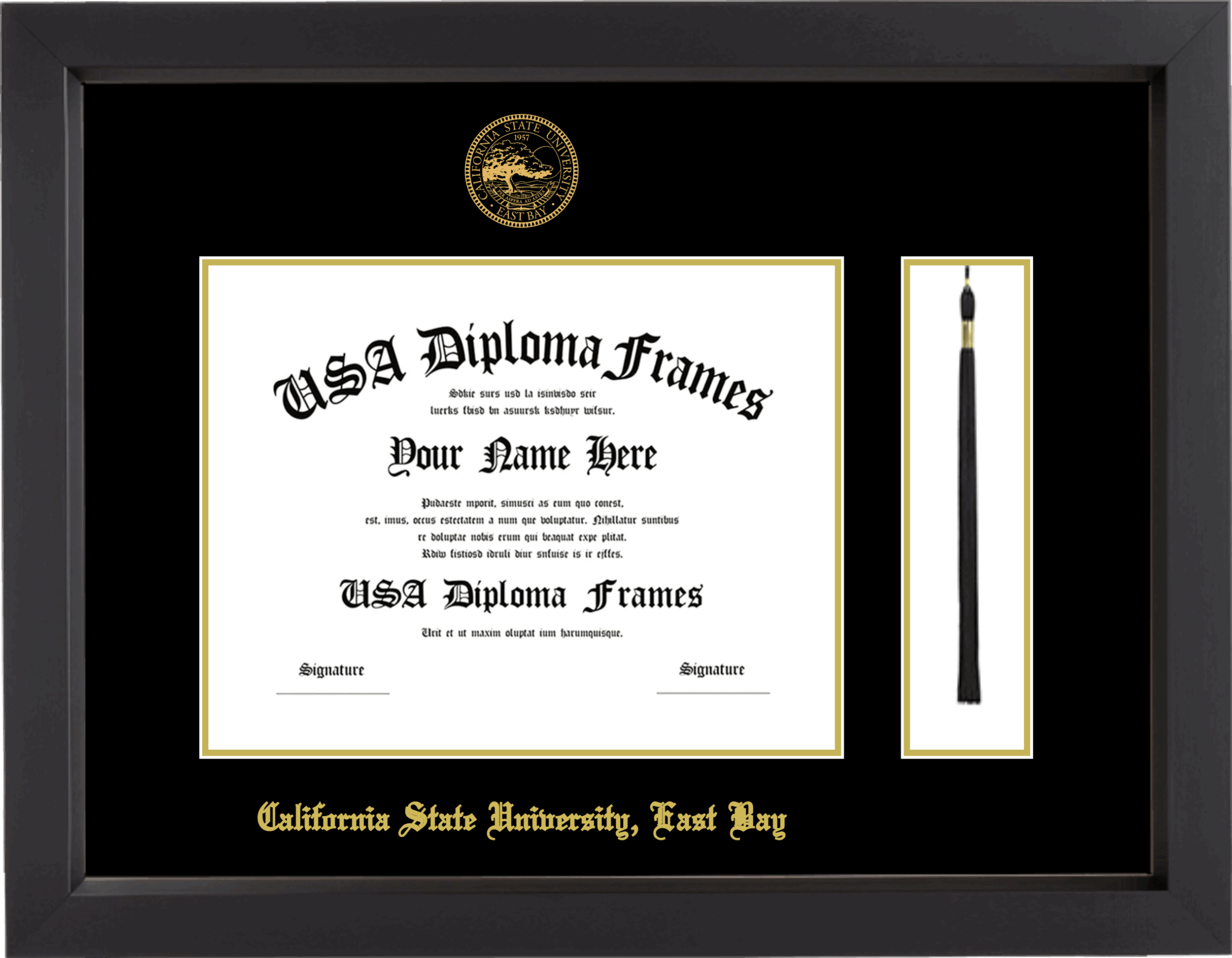 California State University, East Bay Diploma Frame with Tassel – Black Matte – Black and Gold Mat