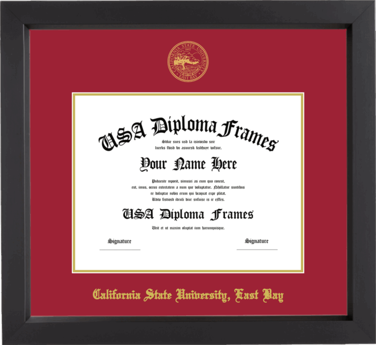Want to explore more styles? Browse our full range of diploma frame layouts, or visit the California State University, East Bay to view options available for your school. Looking for a fully personalized design? Try our custom Frame Builder and create a frame that’s uniquely yours.