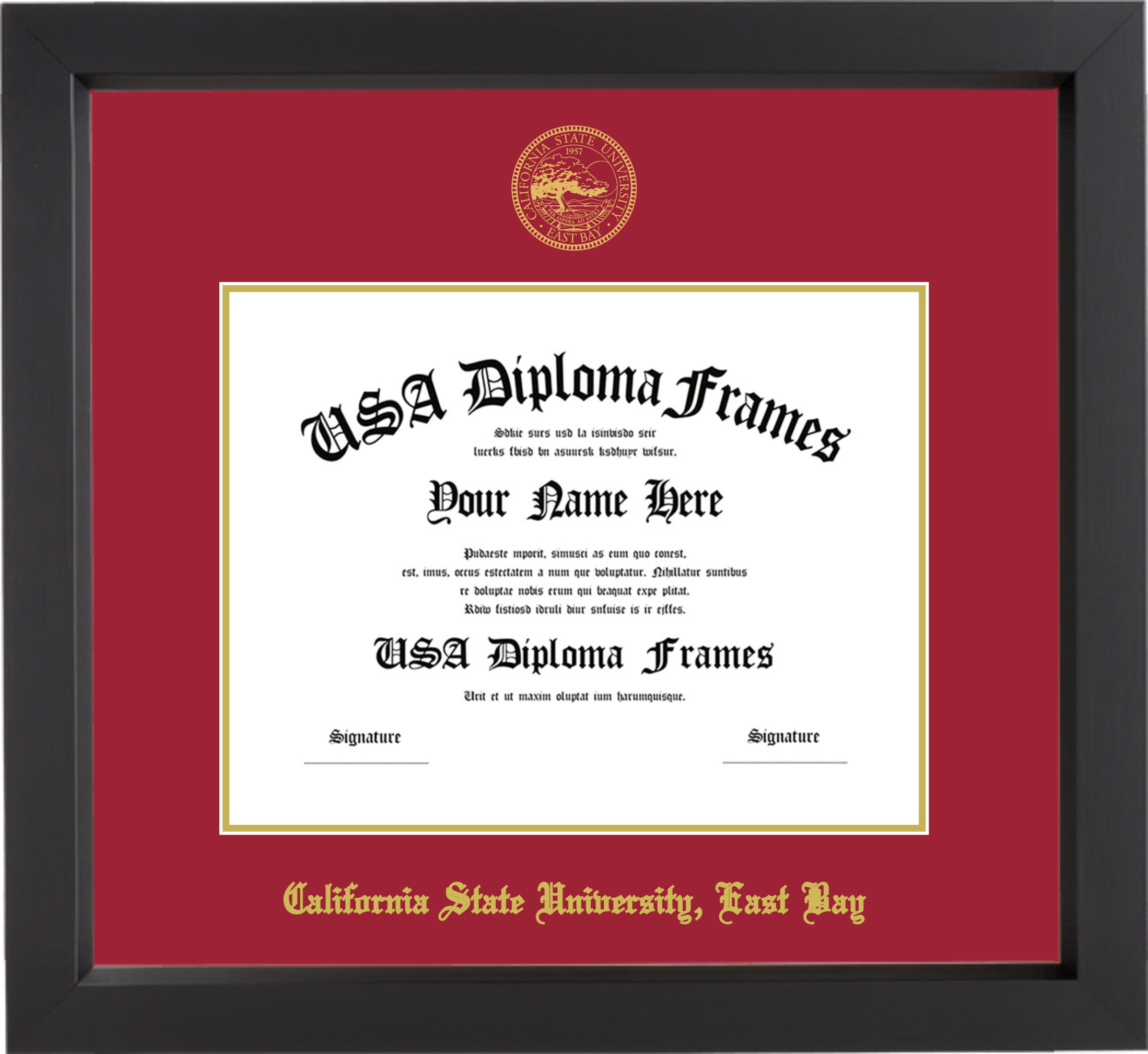 California State University, East Bay Diploma Frame – Black Matte – Crimson and Gold Mat