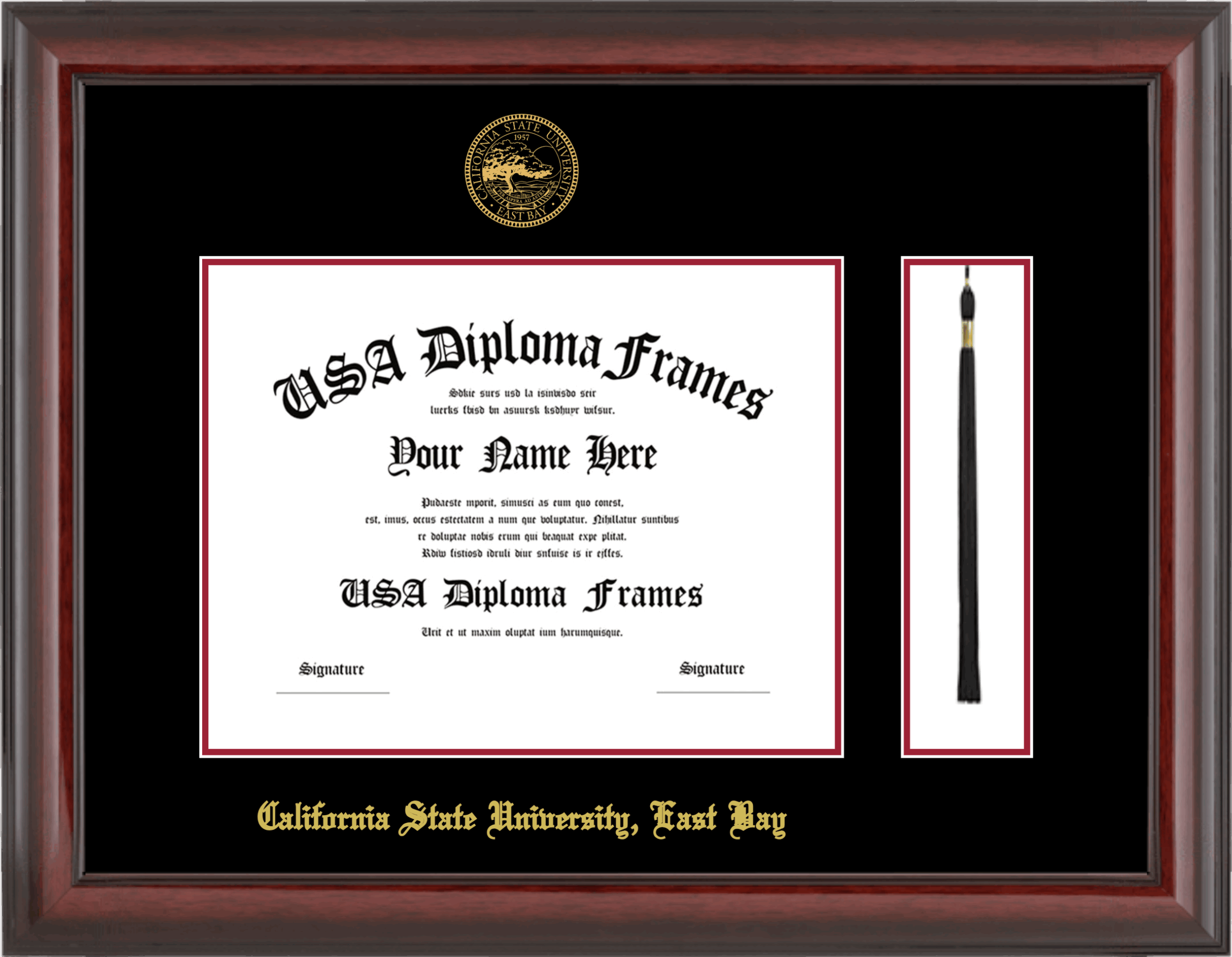 California State University, East Bay Diploma Frame with Tassel – Cherry Mahogany Glossy – Black and Crimson Mat
