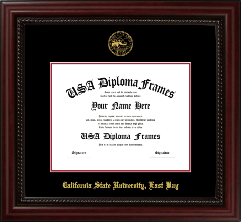 Want to explore more styles? Browse our full range of diploma frame layouts, or visit the California State University, East Bay to view options available for your school. Looking for a fully personalized design? Try our custom Frame Builder and create a frame that’s uniquely yours.