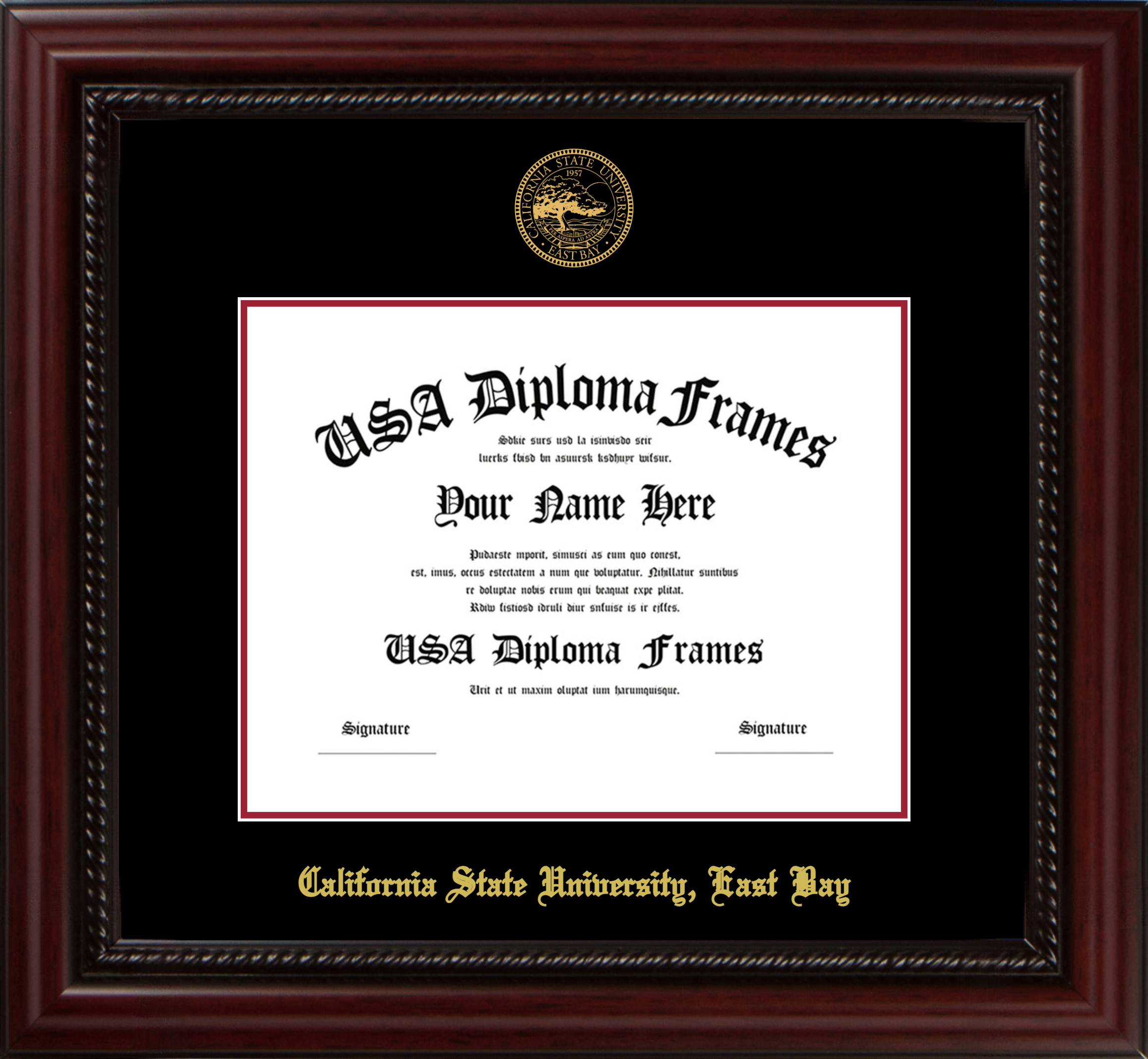 California State University, East Bay Diploma Frame – Executive Cherry Rope – Black and Crimson Mat