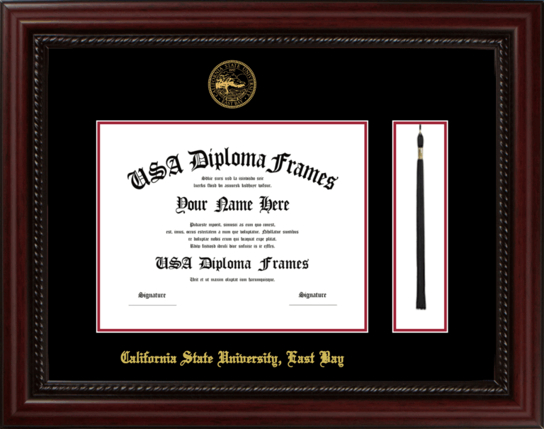 California State University, East Bay Diploma Frame with Tassel – Executive Cherry Rope – Black and Crimson Mat