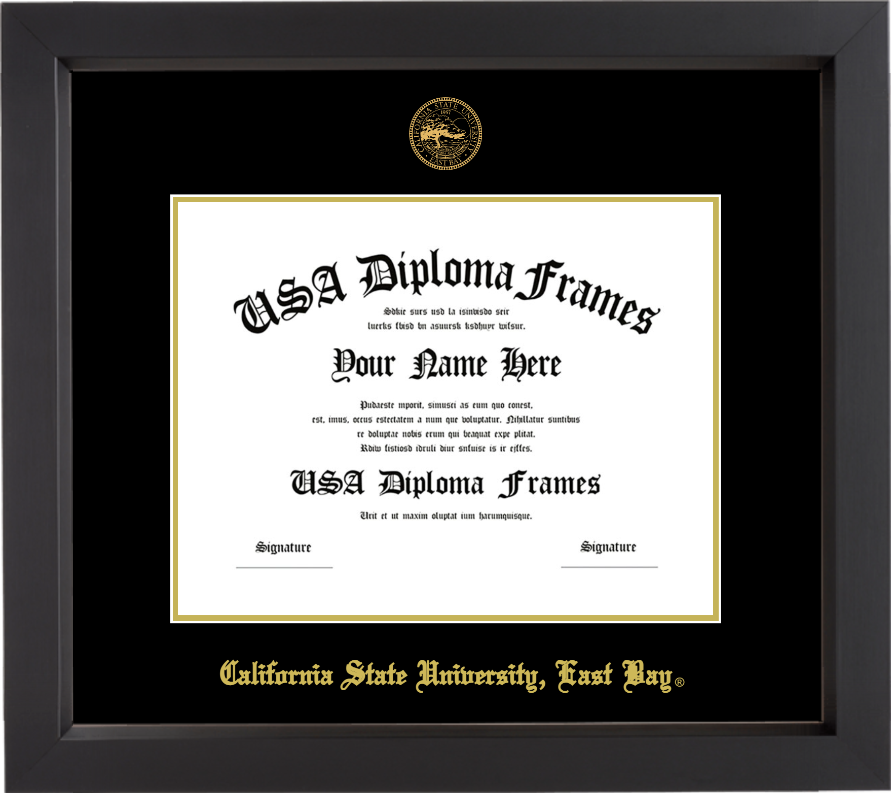 California State University, East Bay Diploma Frame – Black Matte – Black and Gold Mat