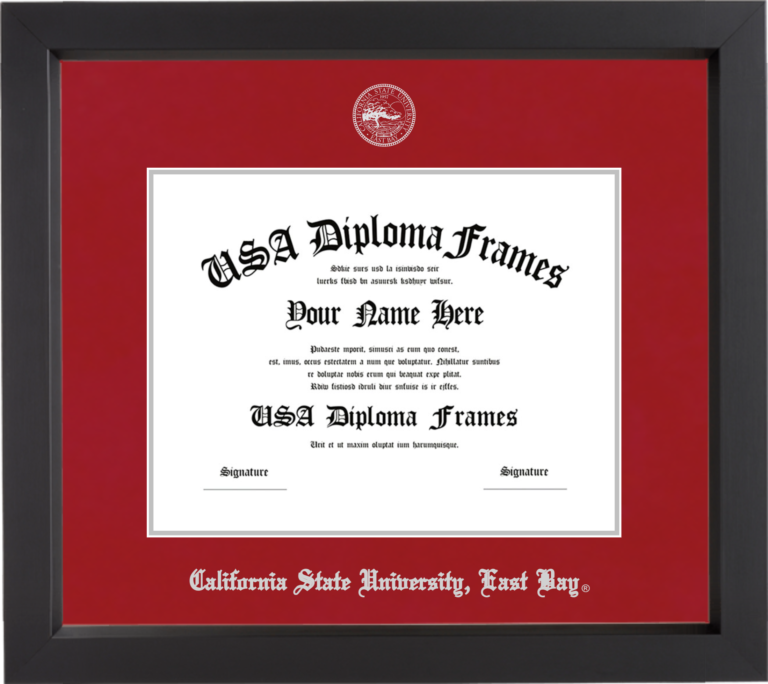 Want to explore more styles? Browse our full range of diploma frame layouts, or visit the California State University, East Bay to view options available for your school. Looking for a fully personalized design? Try our custom Frame Builder and create a frame that’s uniquely yours.