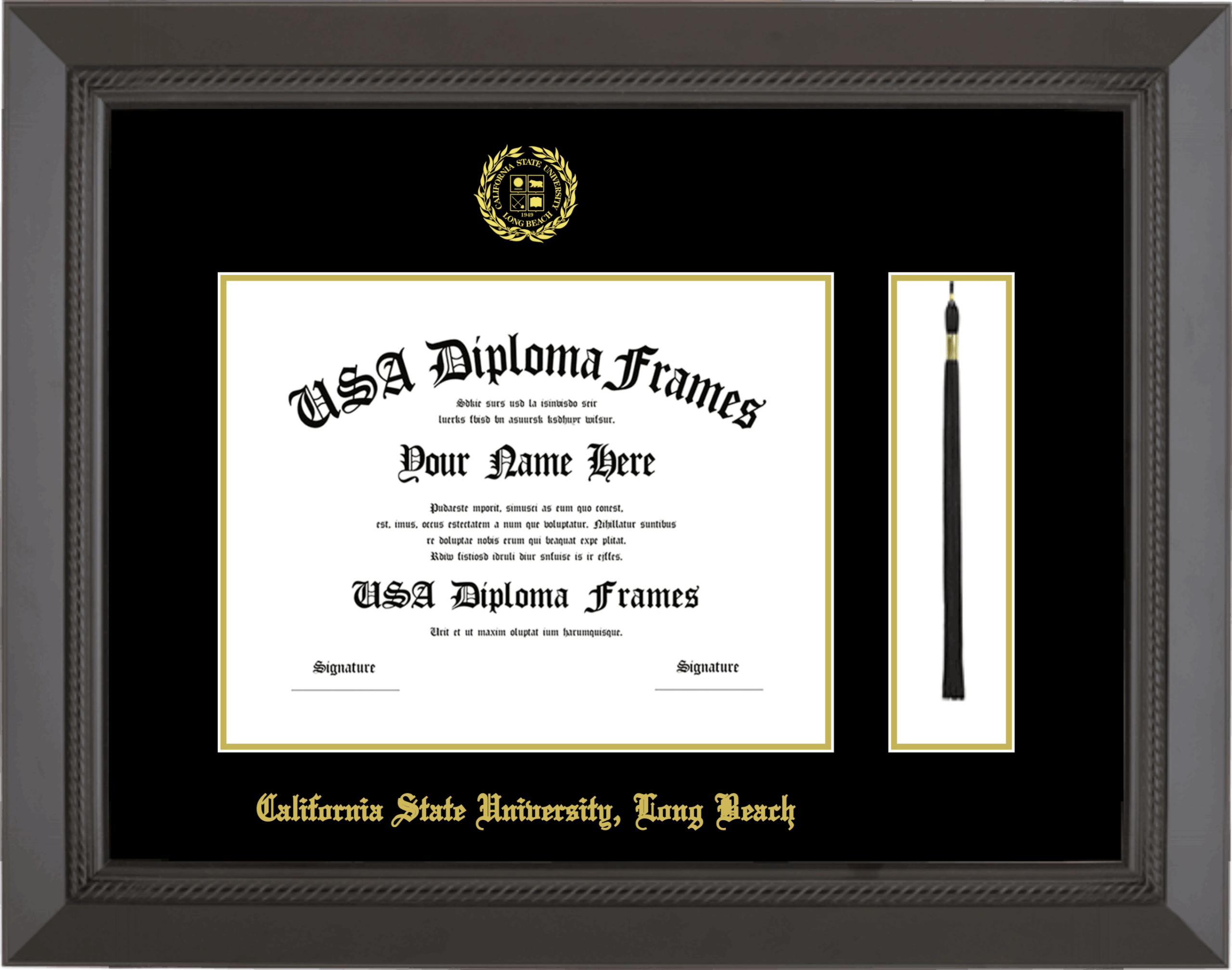 California State University Long Beach Diploma Frame with Tassel – Black Rope – Black and Gold Mat
