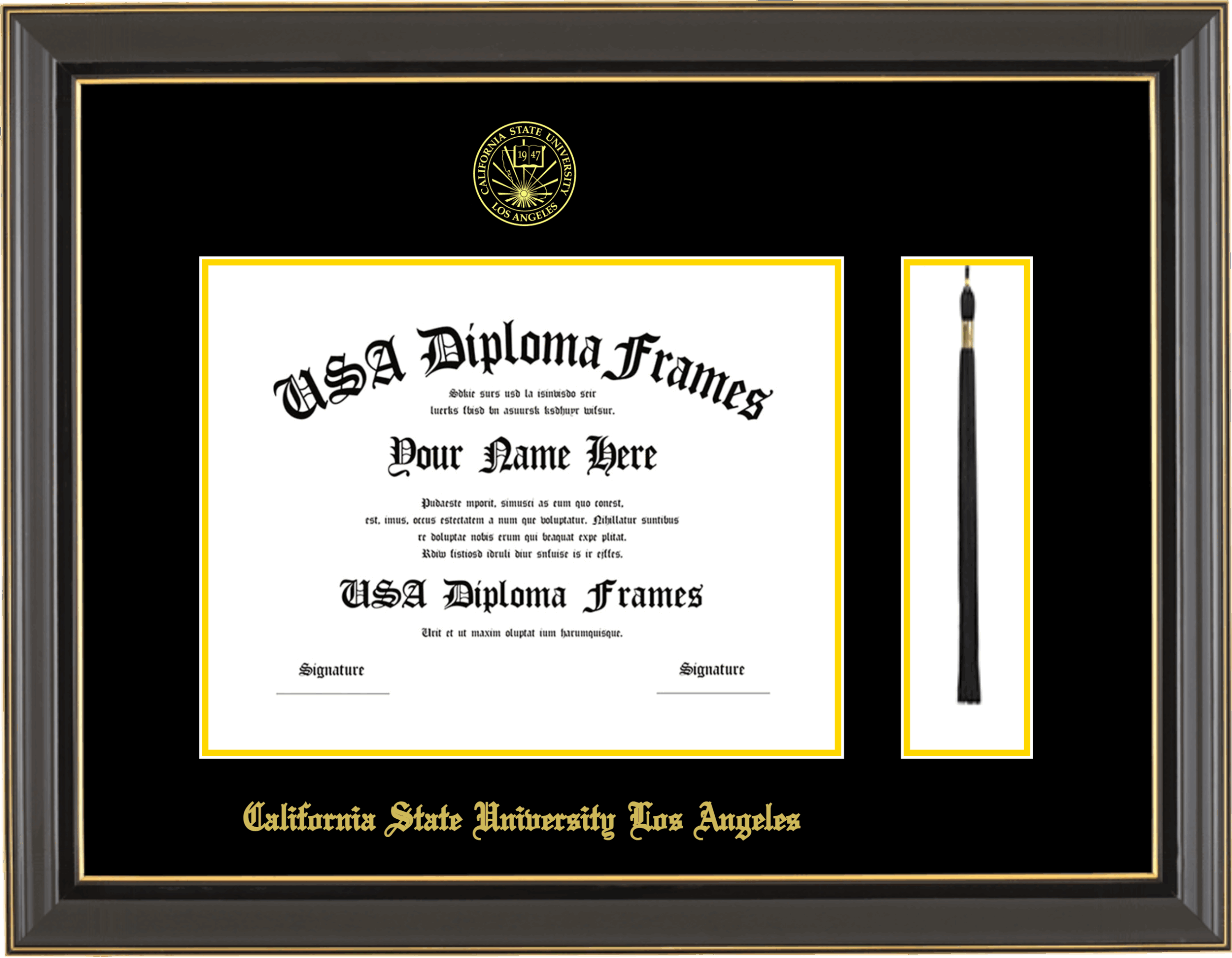 California State University Los Angeles Diploma Frame with Tassel – Black Gold Trim Glossy – Black and Yellow Gold Mat