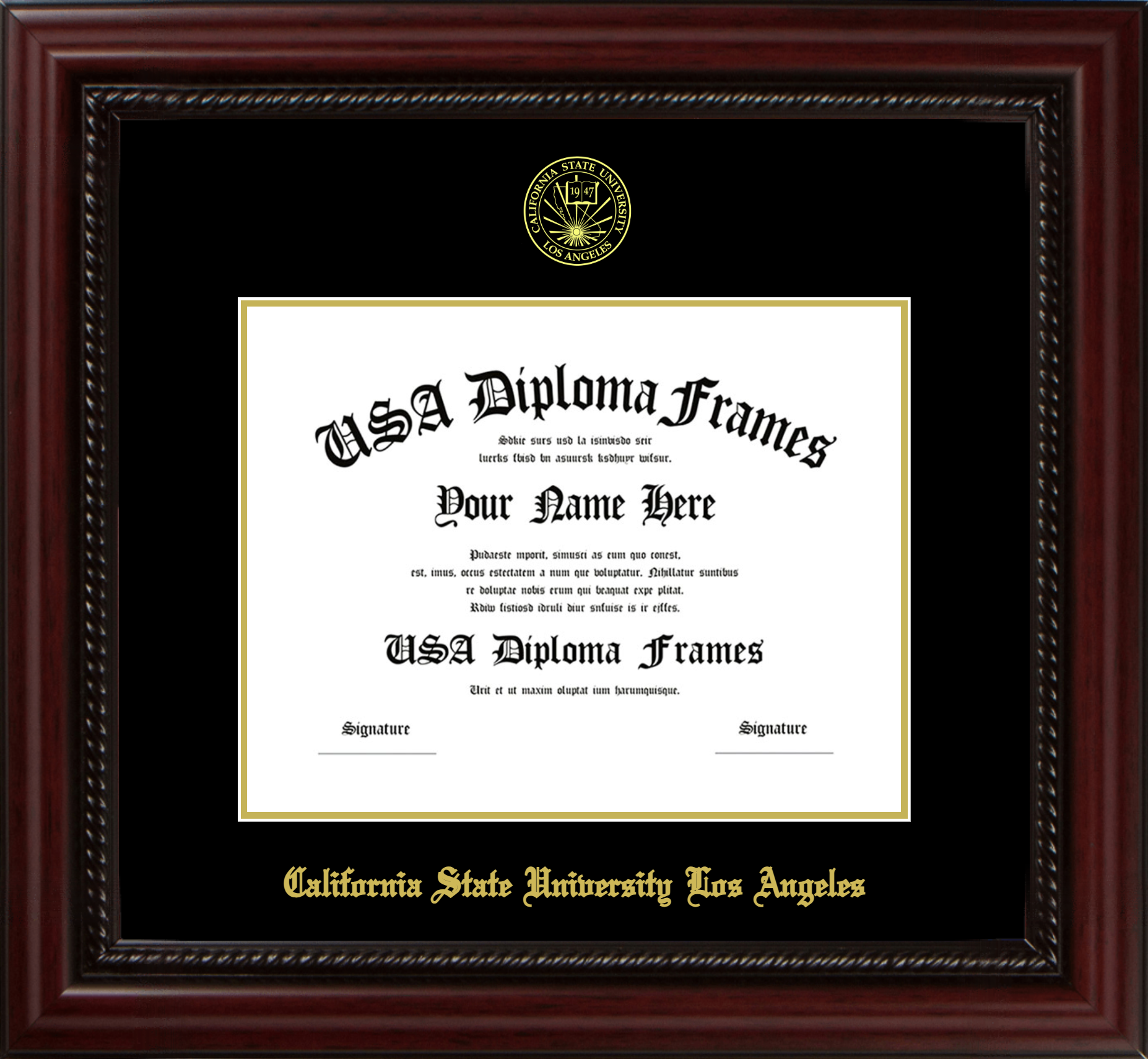California State University Los Angeles Diploma Frame – Cal State LA – Executive Cherry Rope – Black and Gold Mat