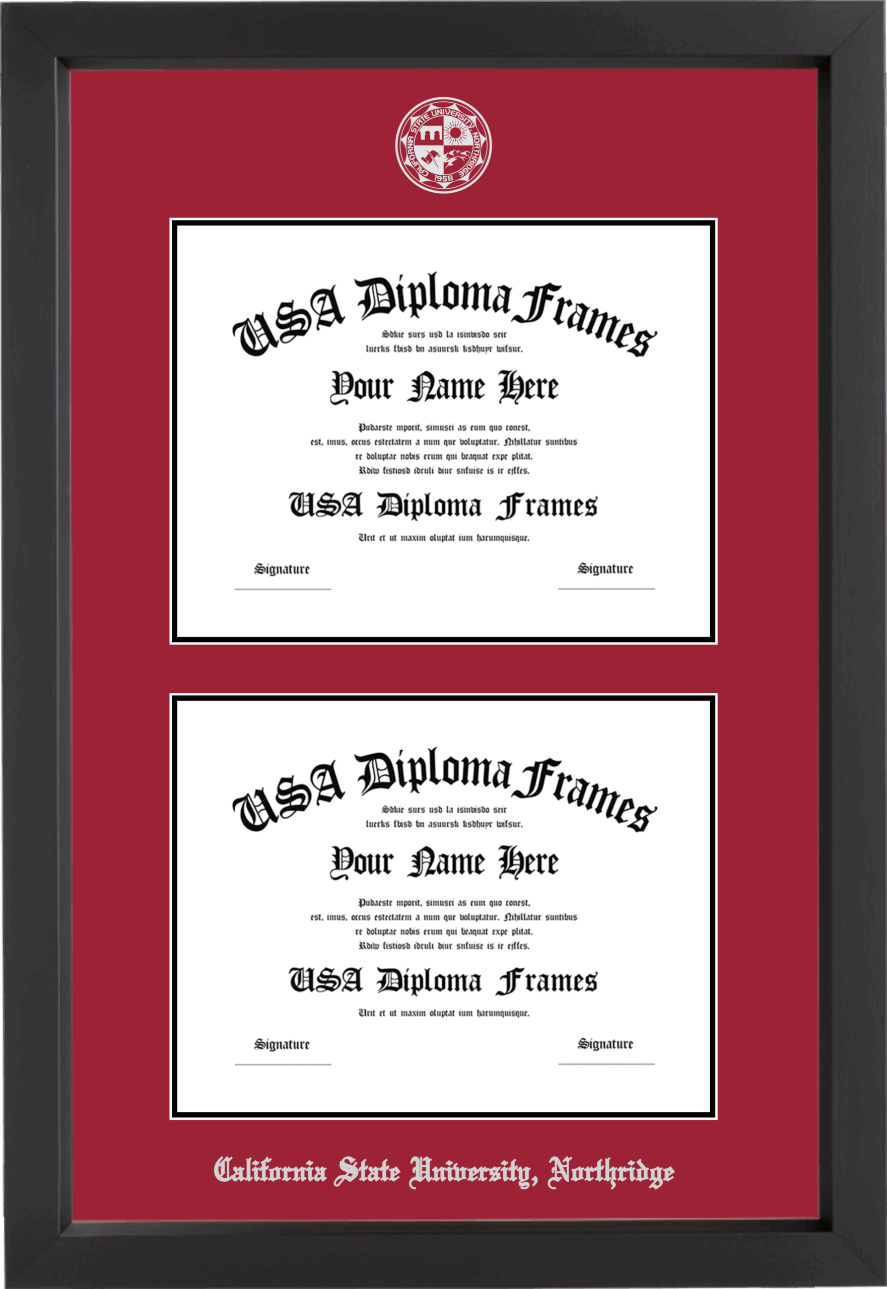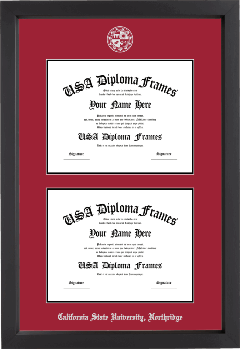 California State University, Northridge Double Diploma Frame – Double Document – Black Matte – Crimson and Black Mat