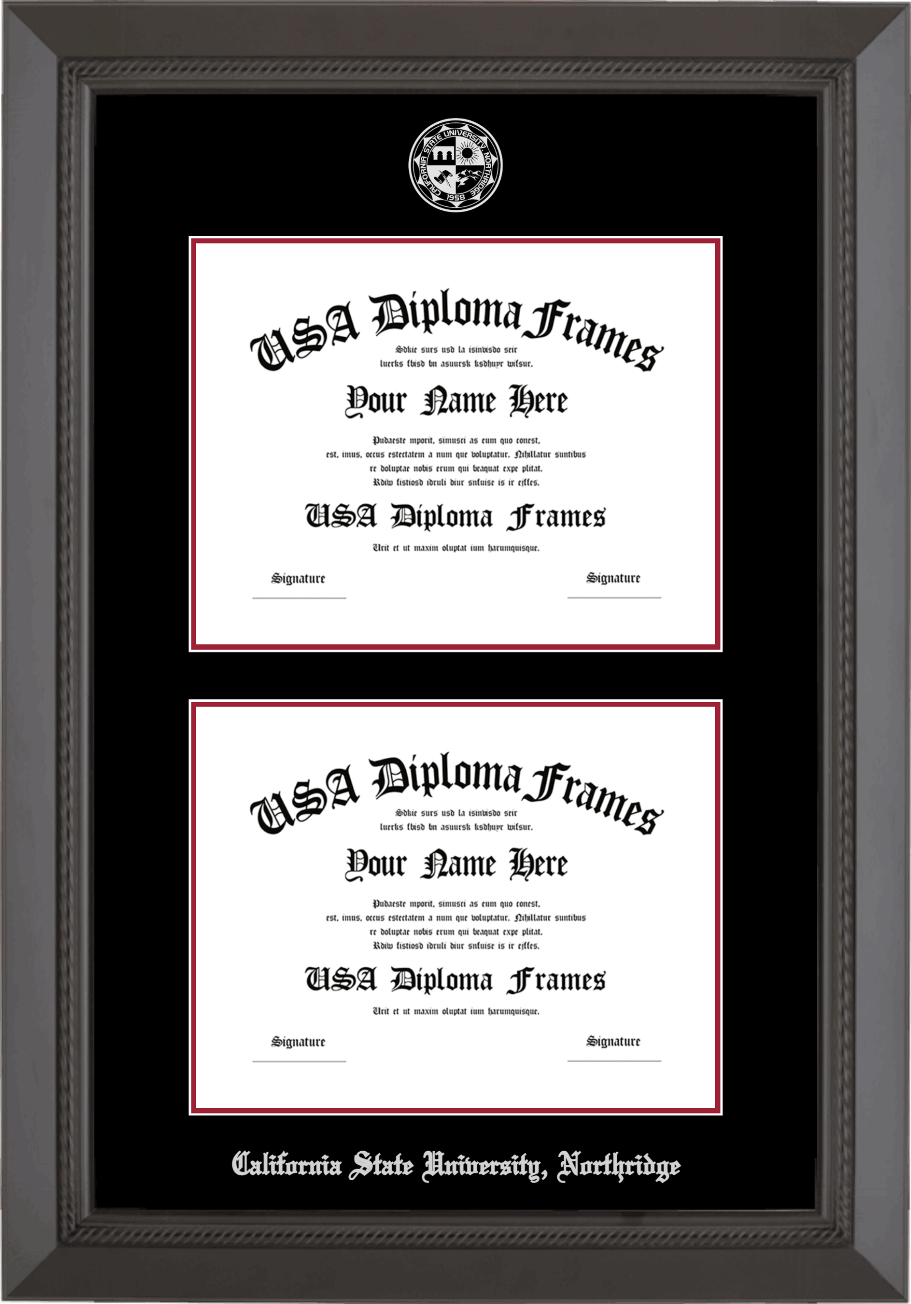 California State University, Northridge Double Diploma Frame – Double Document – Black Rope – Black and Crimson Mat