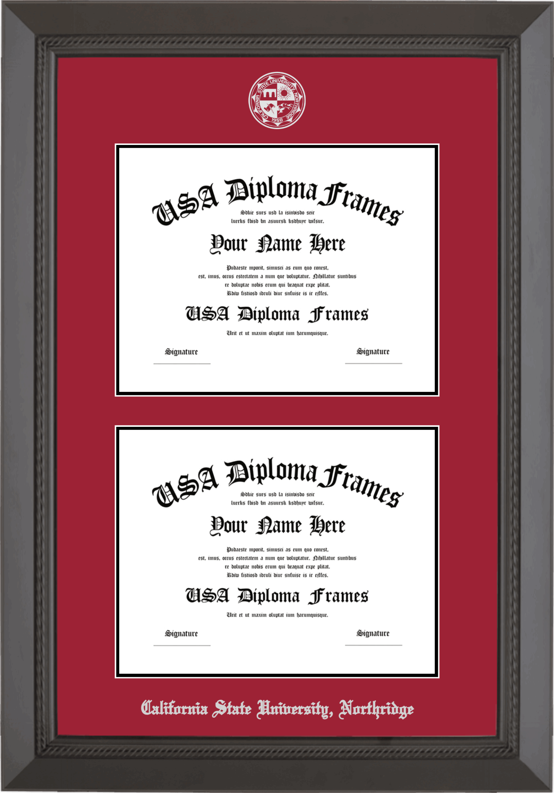 California State University, Northridge Double Diploma Frame – Double Document – Black Rope – Crimson and Black Mat