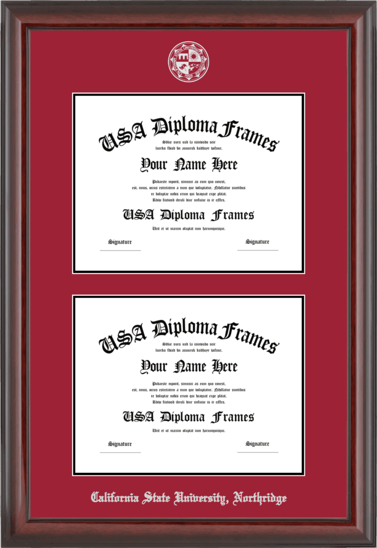 California State University, Northridge Double Diploma Frame – Cherry Mahogany Glossy – Crimson and Black Mat
