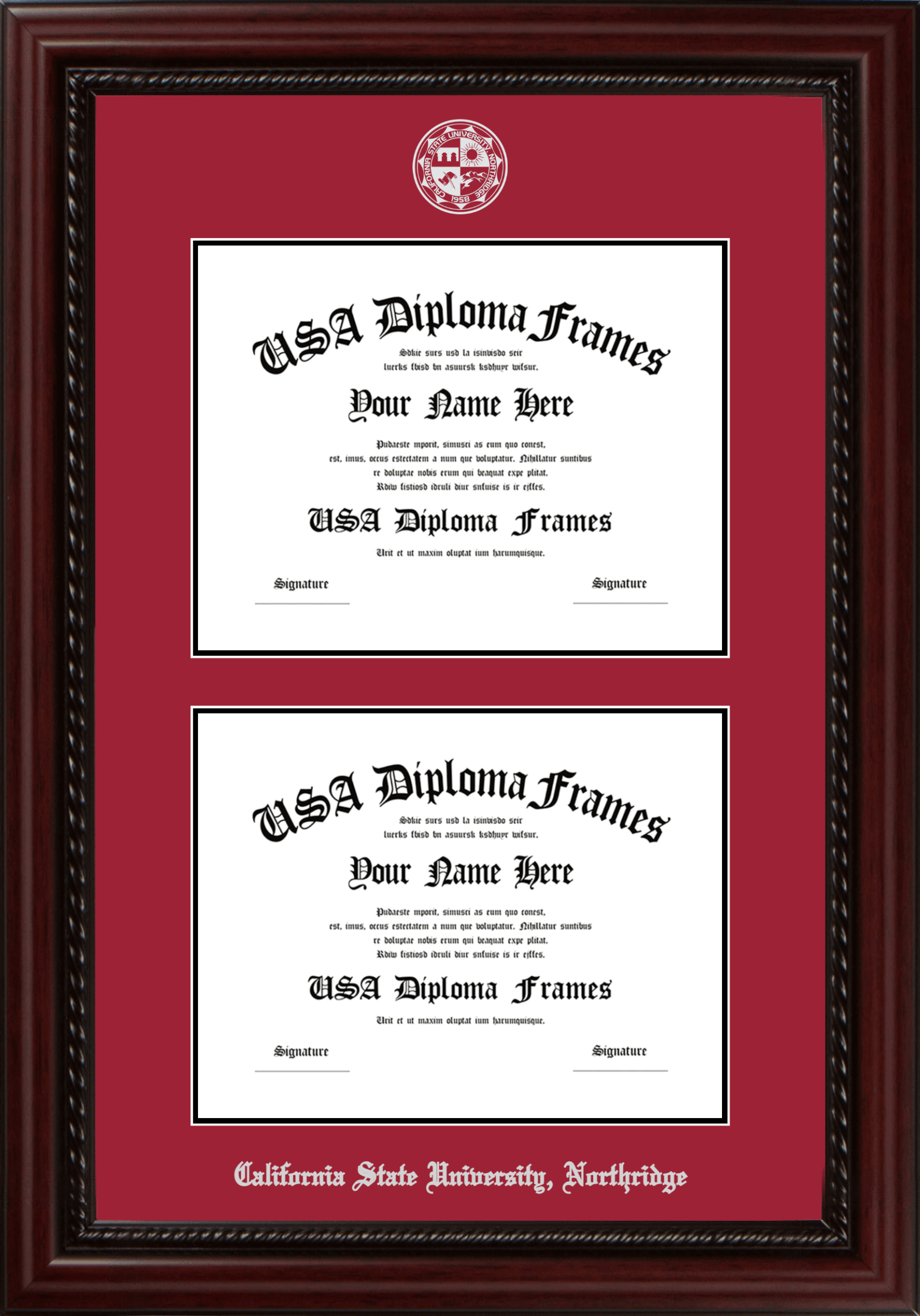 Want to explore more styles? Browse our full range of diploma frame layouts, or visit the California State University, Northridge to view options available for your school. Looking for a fully personalized design? Try our custom Frame Builder and create a frame that’s uniquely yours.