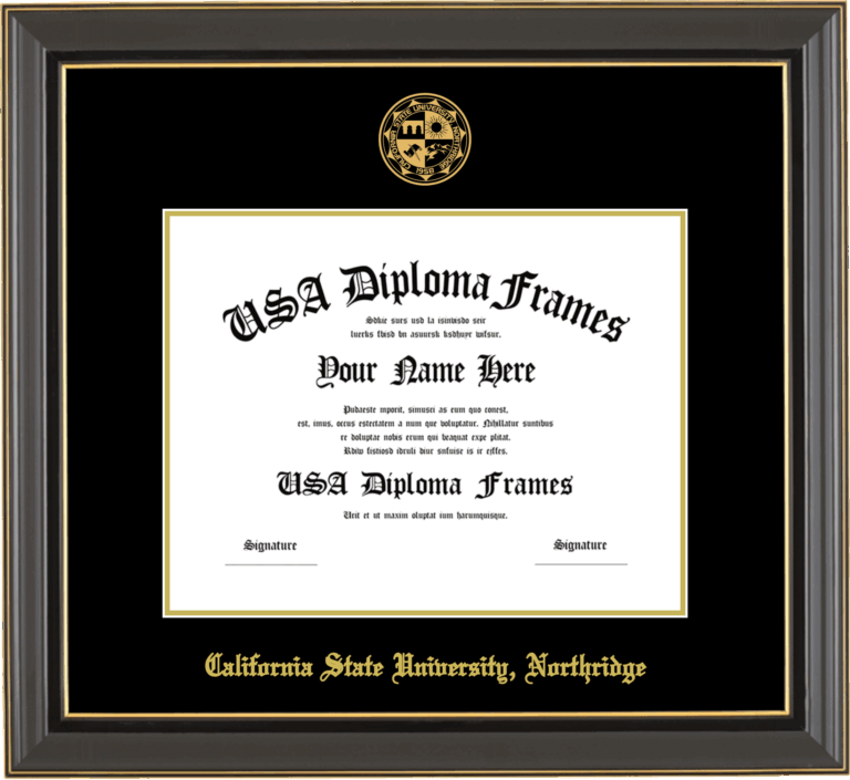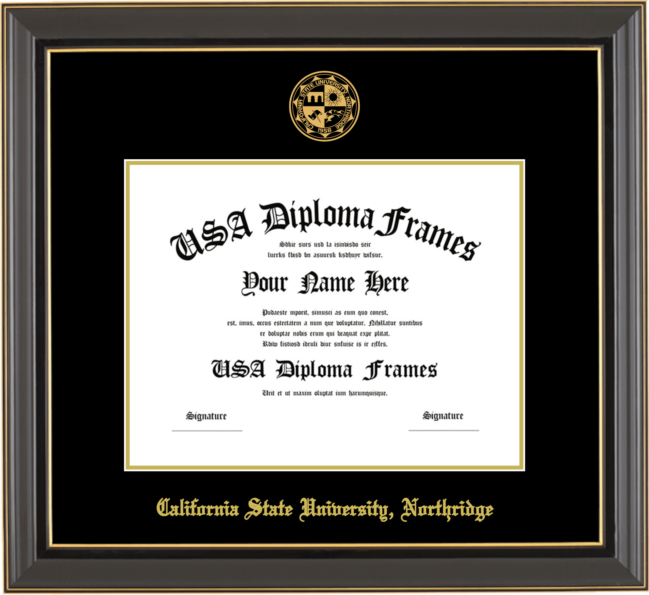 California State University, Northridge Diploma Frame – Black Gold Trim Glossy – Black and Gold Mat