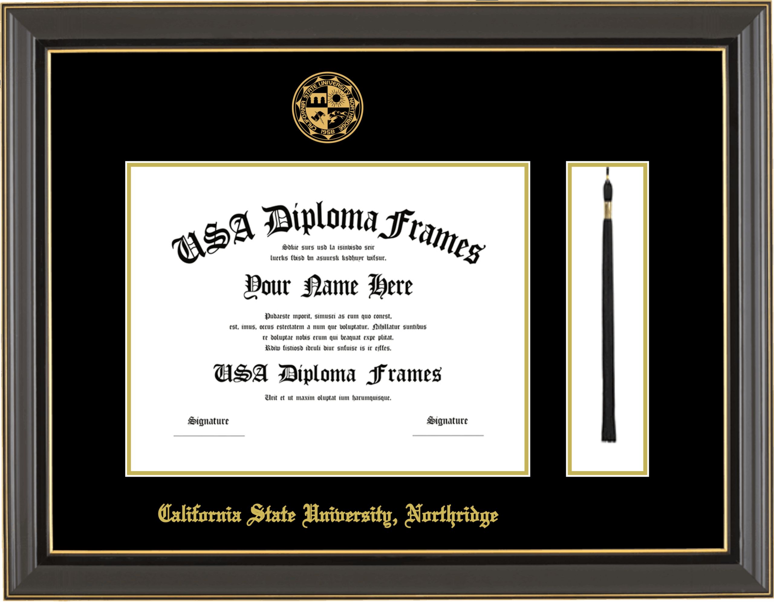 California State University, Northridge Diploma Frame with Tassel – Black Gold Trim Glossy – Black and Gold Mat