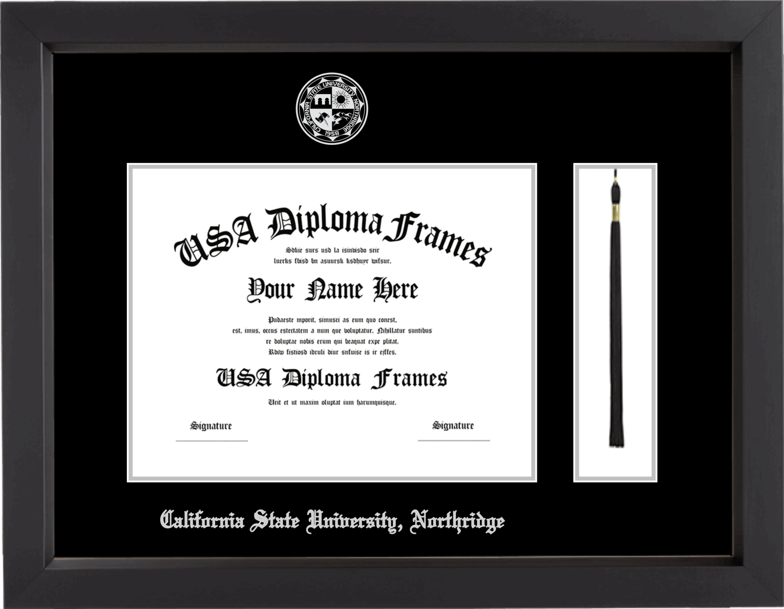 California State University, Northridge Diploma Frame with Tassel – Black Matte – Black and Silver Mat