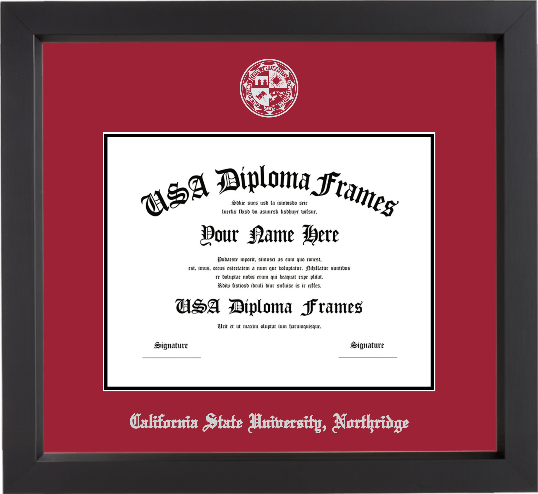 California State University, Northridge Diploma Frame – Black Matte – Crimson and Black Mat