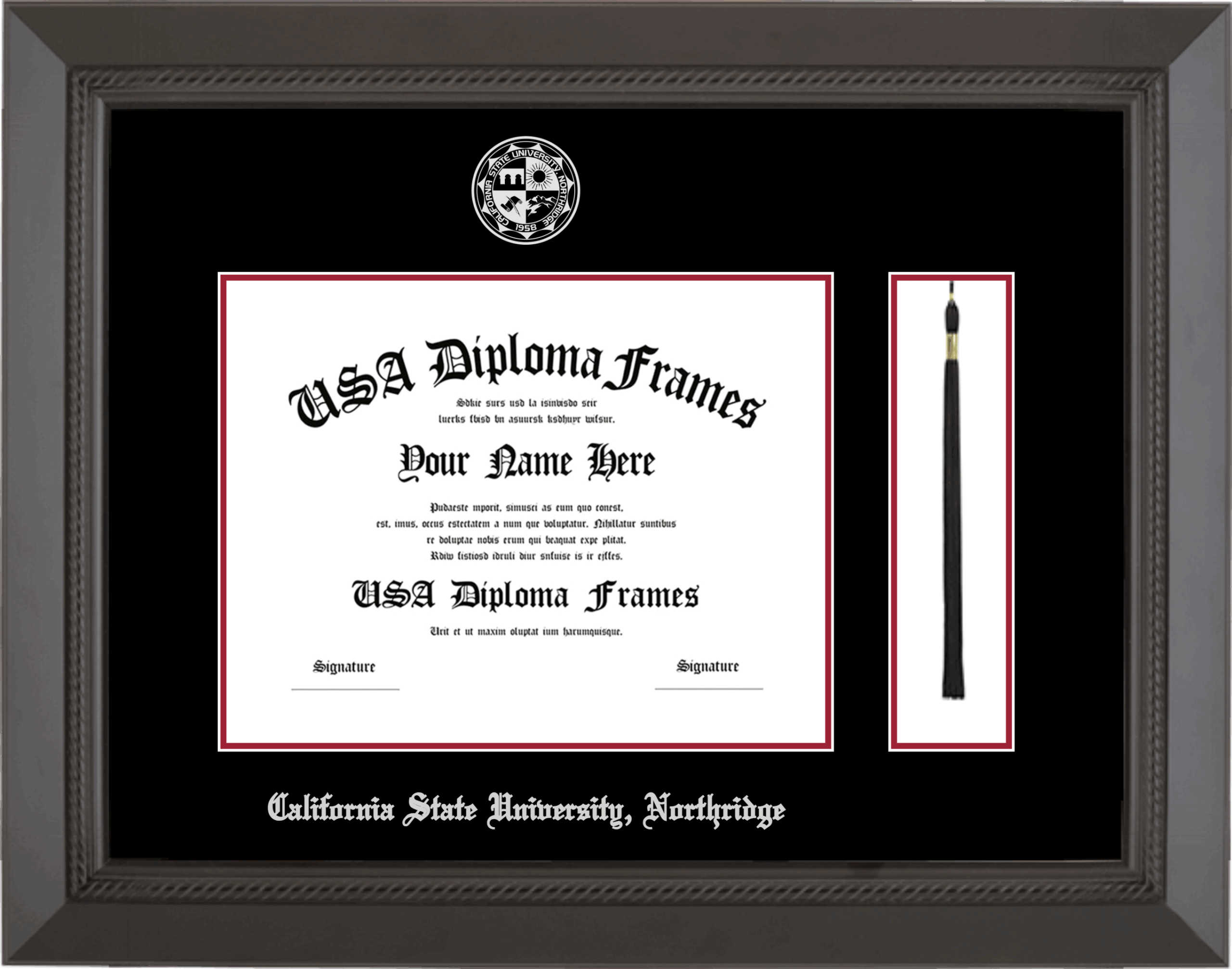 California State University, Northridge Diploma Frame with Tassel – Black Rope – Black and Crimson Mat