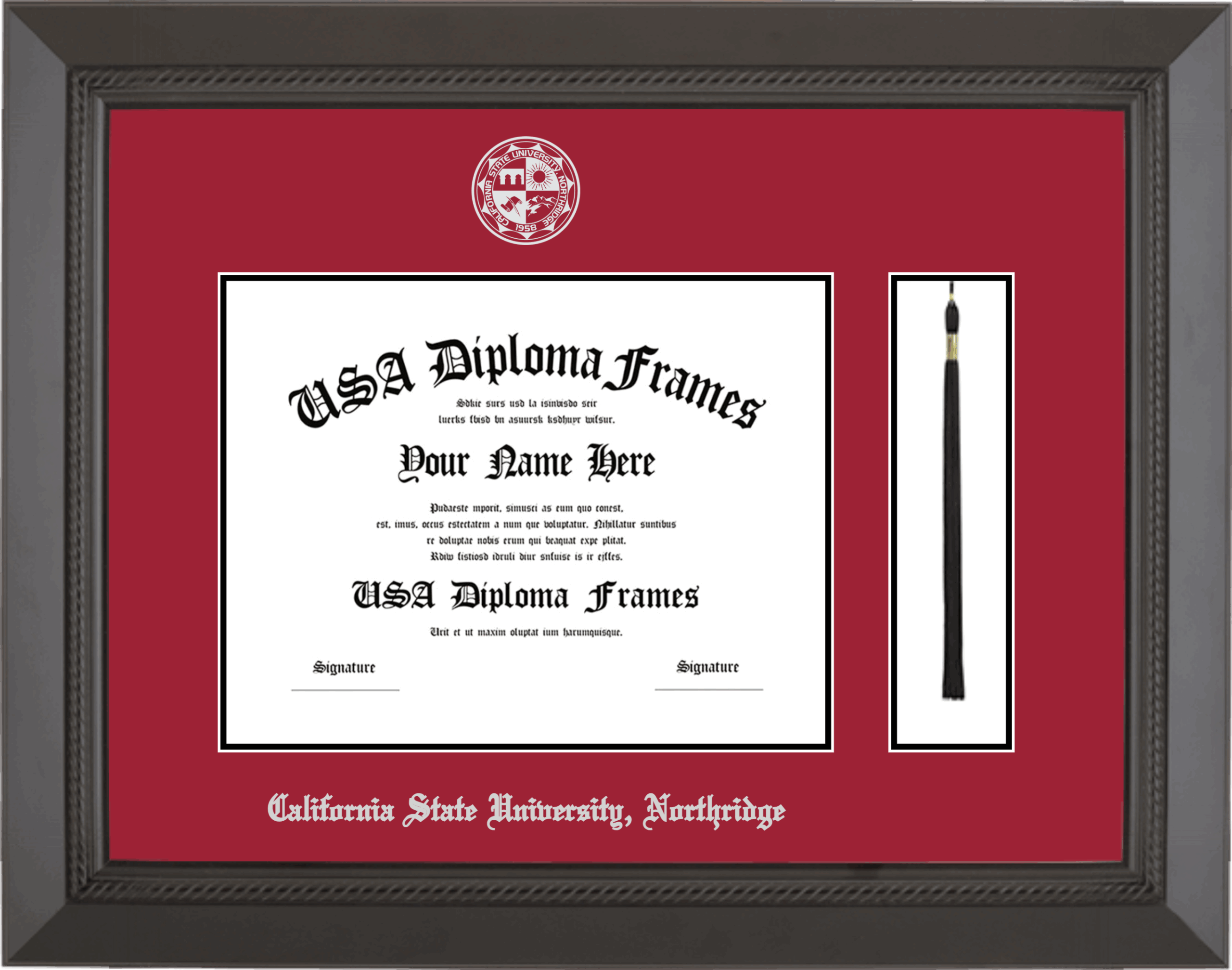 California State University, Northridge Diploma Frame with Tassel – Black Rope – Crimson and Black Mat