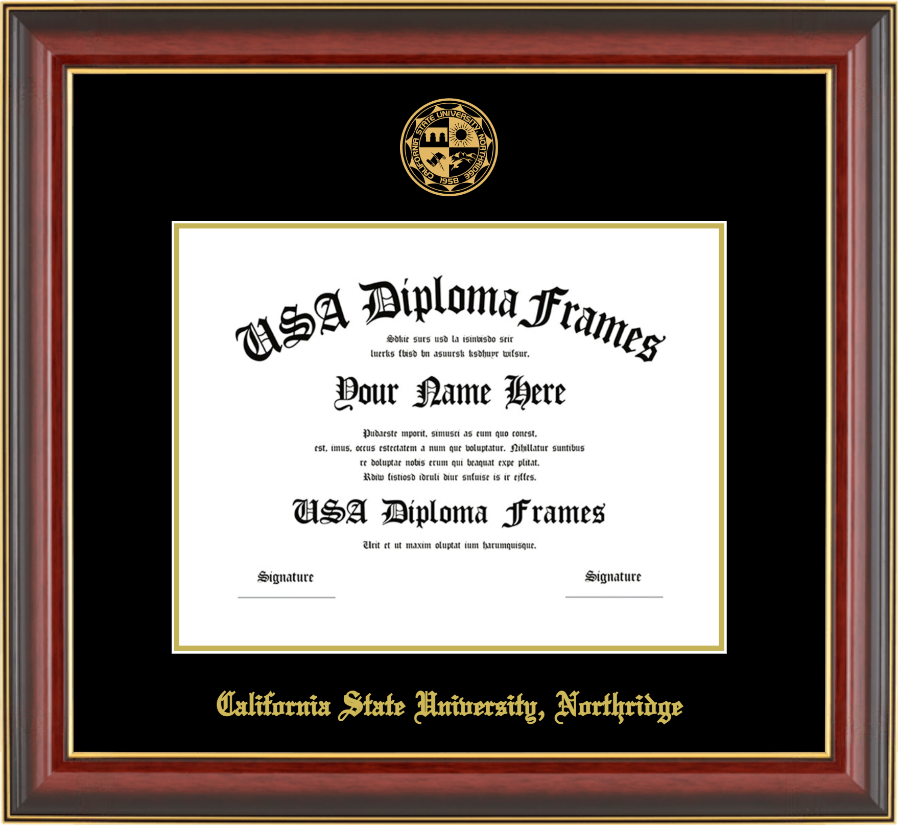 Want to explore more styles? Browse our full range of diploma frame layouts, or visit the California State University, Northridge to view options available for your school. Looking for a fully personalized design? Try our custom Frame Builder and create a frame that’s uniquely yours.