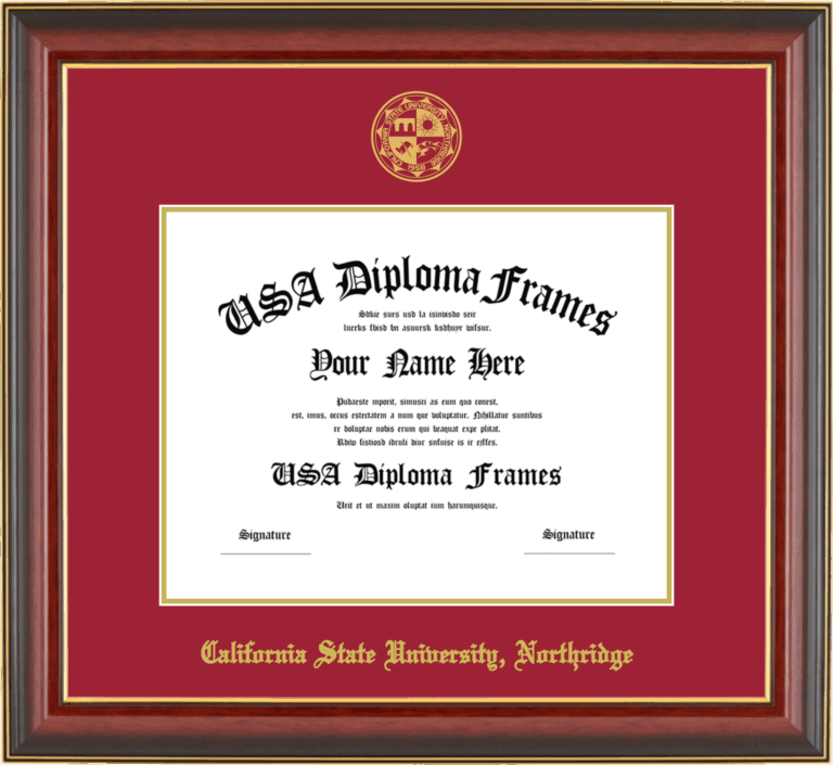 Want to explore more styles? Browse our full range of diploma frame layouts, or visit the California State University, Northridge to view options available for your school. Looking for a fully personalized design? Try our custom Frame Builder and create a frame that’s uniquely yours.