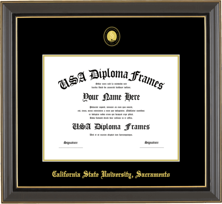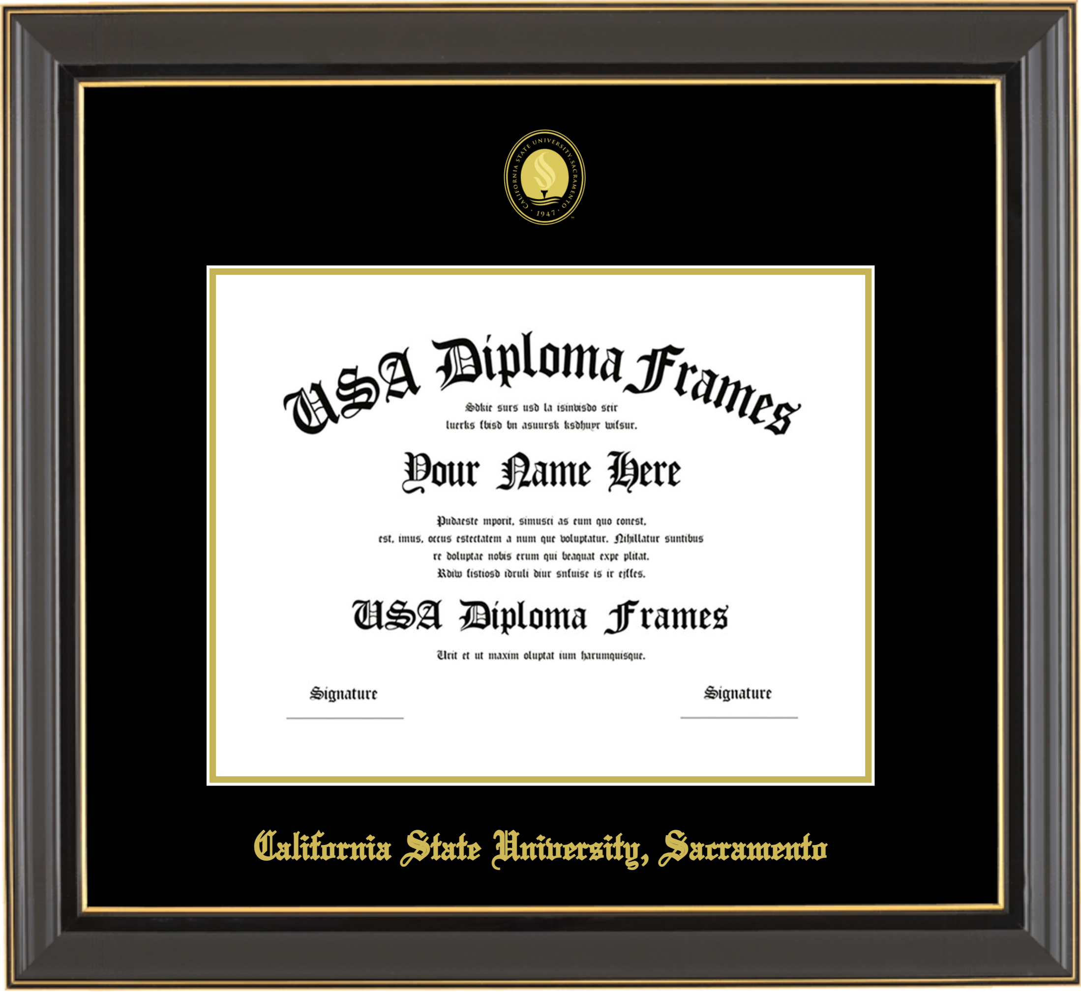 California State University, Sacramento Diploma Frame – Black Gold Trim Glossy – Black and Gold Mat