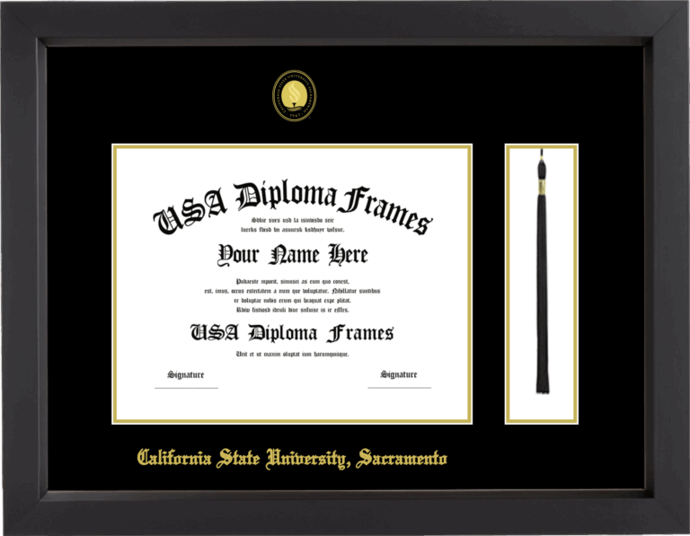California State University, Sacramento Diploma Frame with Tassel – Black Matte – Black and Gold Mat