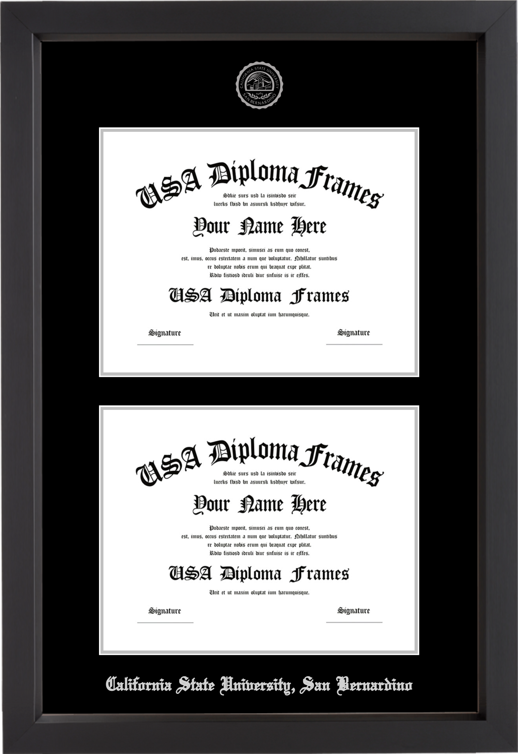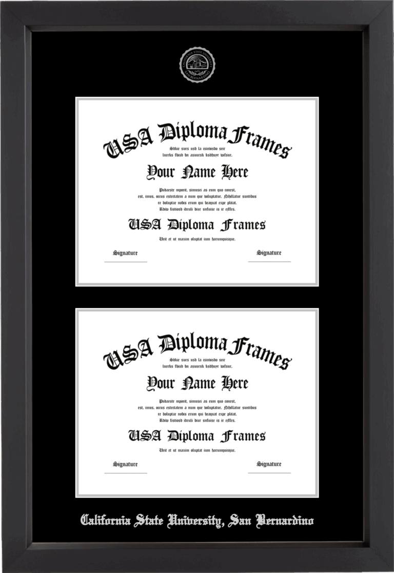 California State University, San Bernardino Double Diploma Frame – Double Document – Black Matte – Black and Silver Mat