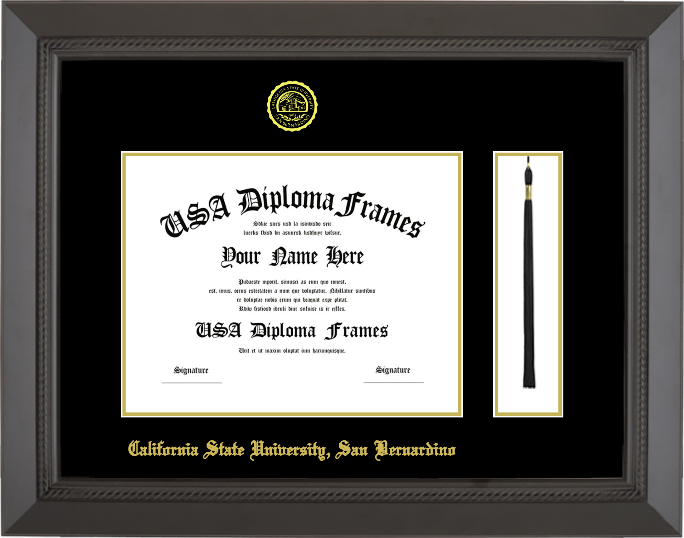 California State University, San Bernardino Diploma Frame with Tassel – Black Rope – Black and Gold Mat