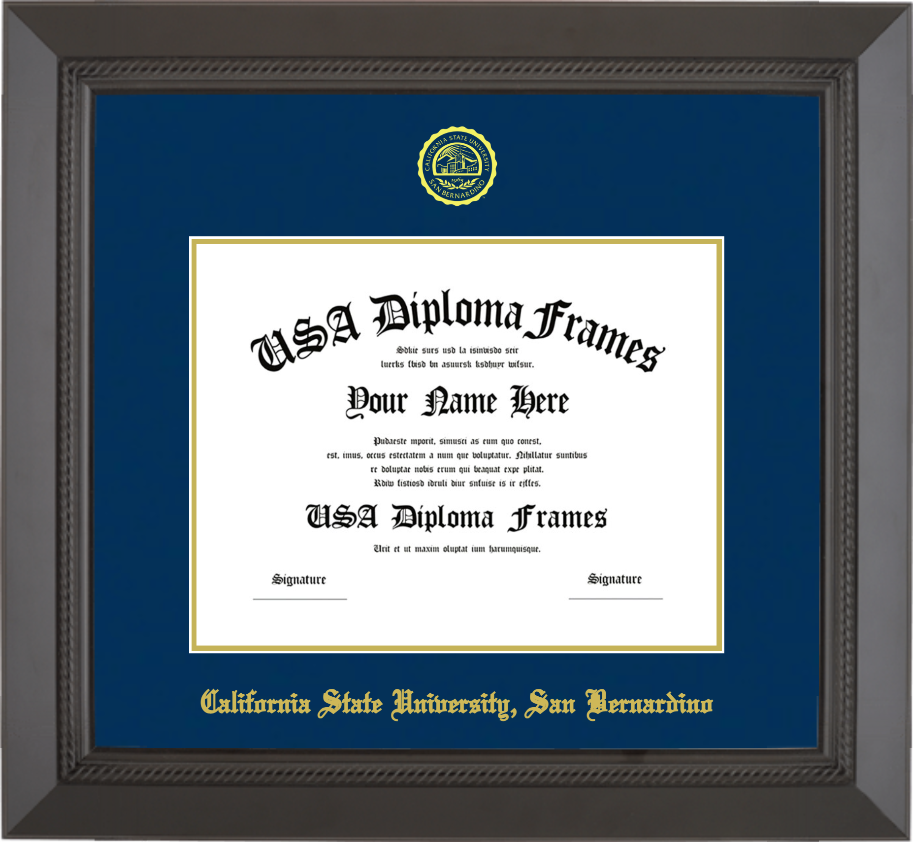 California State University, San Bernardino Diploma Frame – Black Rope – Navy and Gold Mat