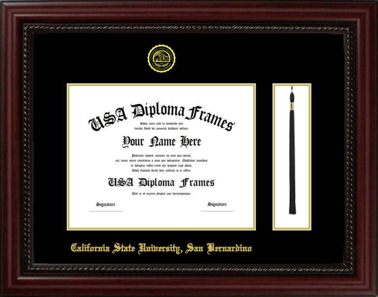 California State University, San Bernardino Diploma Frame with Tassel – Executive Cherry Rope – Black and Gold Mat