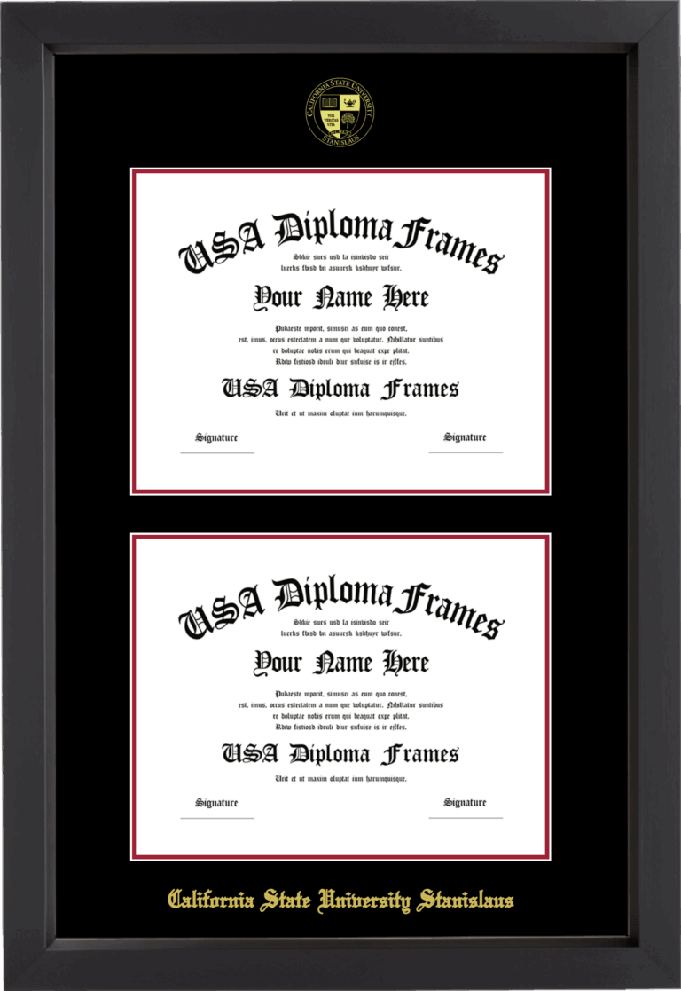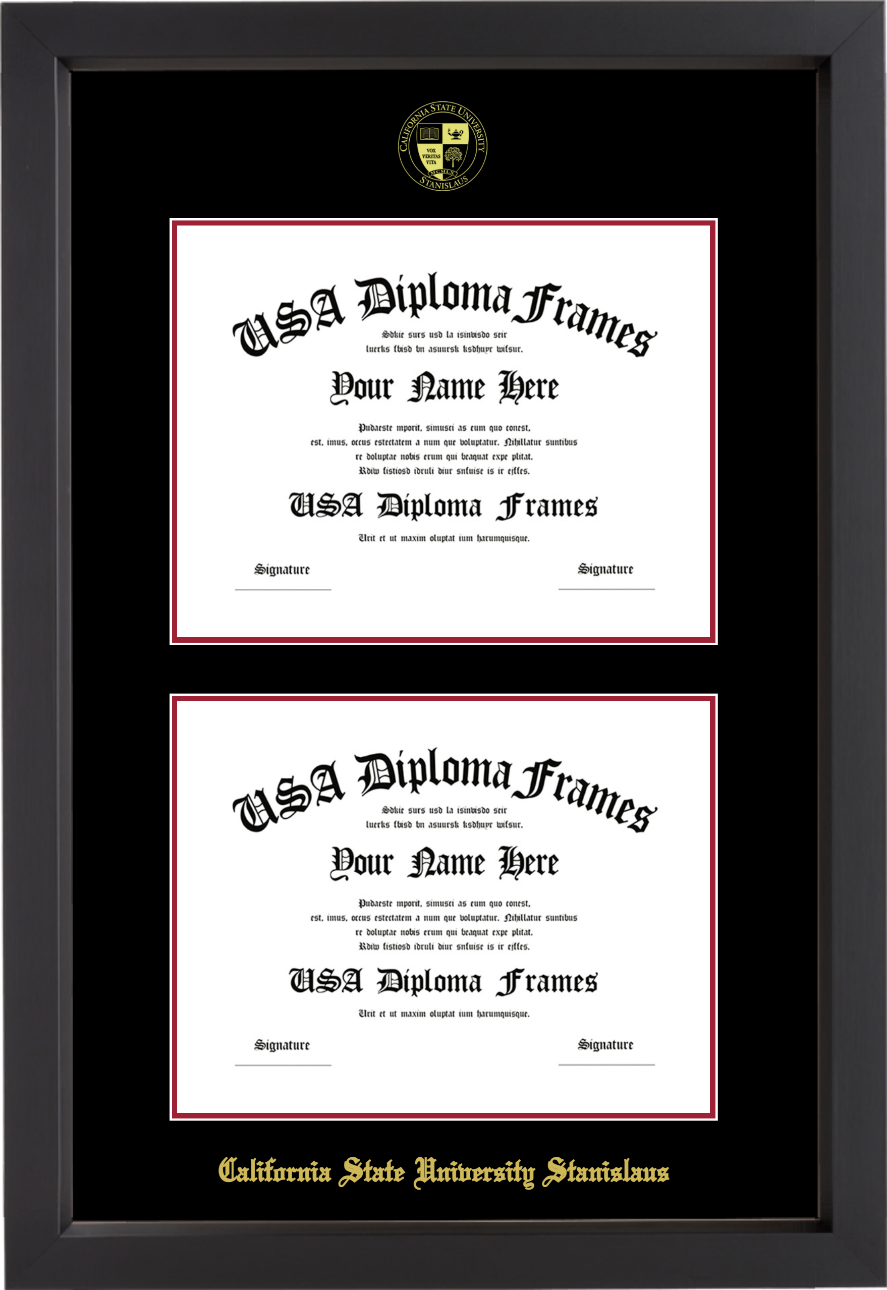 California State University Stanislaus Double Diploma Frame – Double Document – Black Matte – Black and Crimson Mat