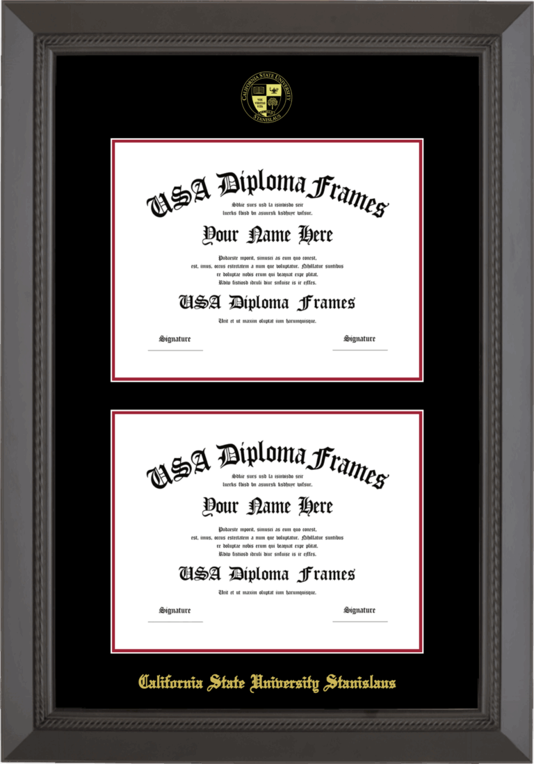 California State University Stanislaus Double Diploma Frame – Double Document – Black Rope – Black and Crimson Mat