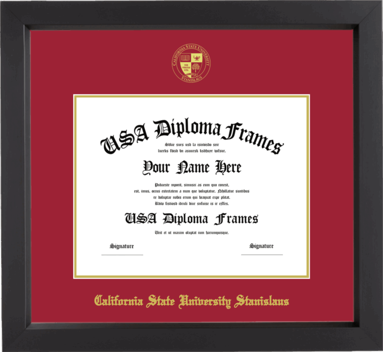 Want to explore more styles? Browse our full range of diploma frame layouts, or visit the California State University Stanislaus to view options available for your school. Looking for a fully personalized design? Try our custom Frame Builder and create a frame that’s uniquely yours.