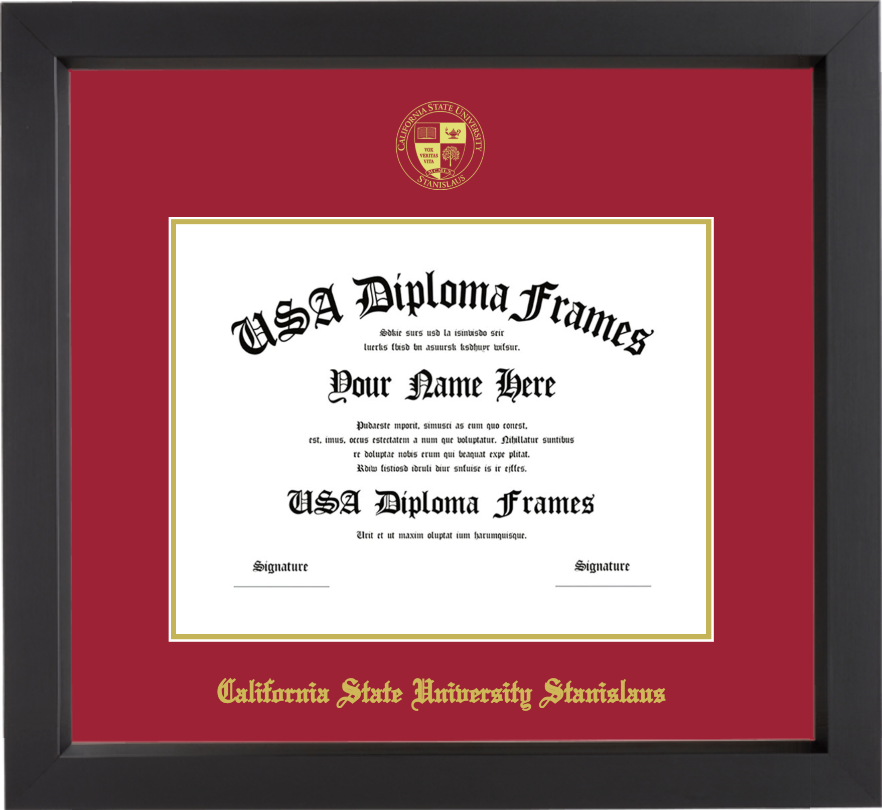 California State University Stanislaus Diploma Frame – Black Matte – Crimson and Gold Mat