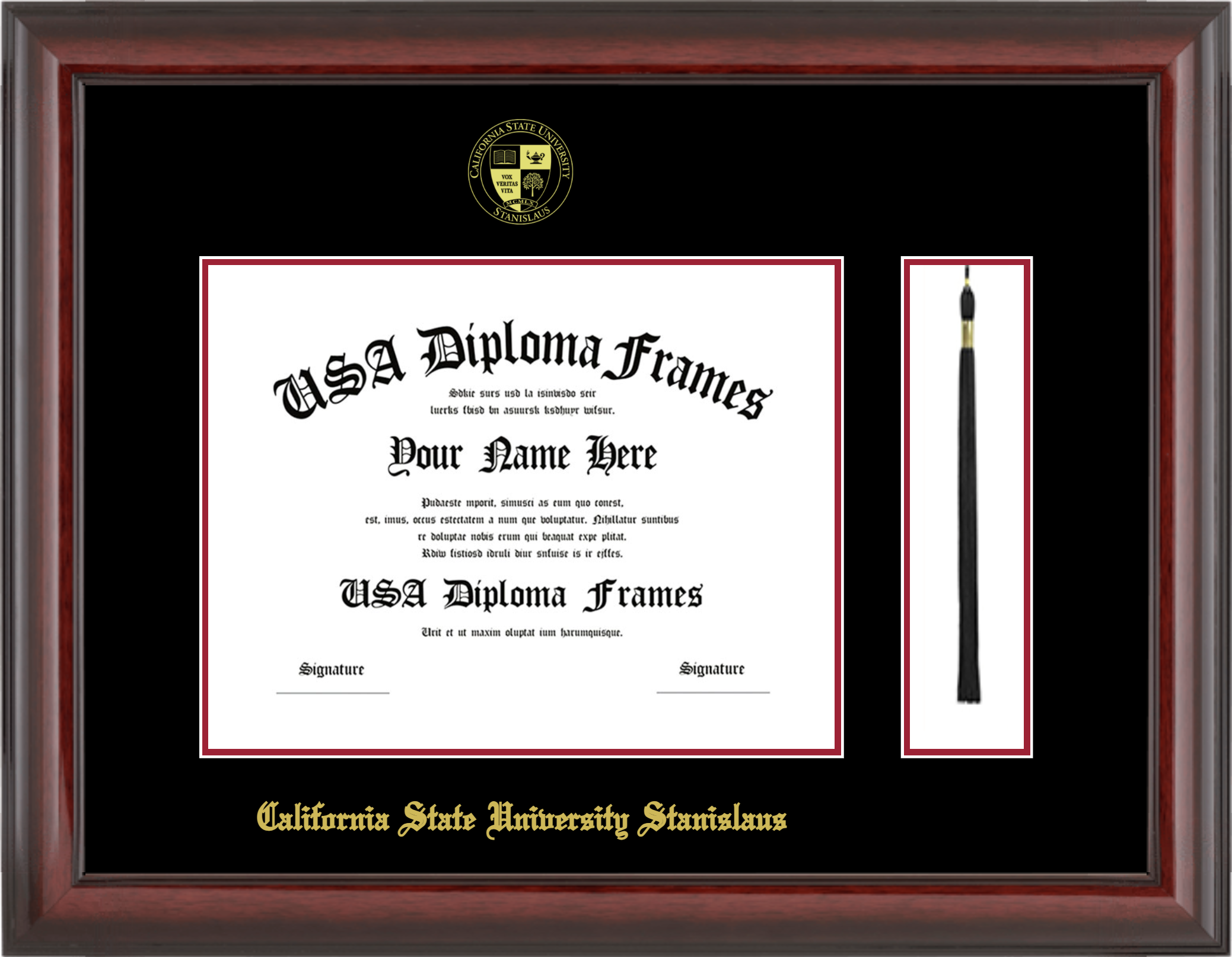 California State University Stanislaus Diploma Frame with Tassel – Cherry Mahogany Glossy – Black and Crimson Mat