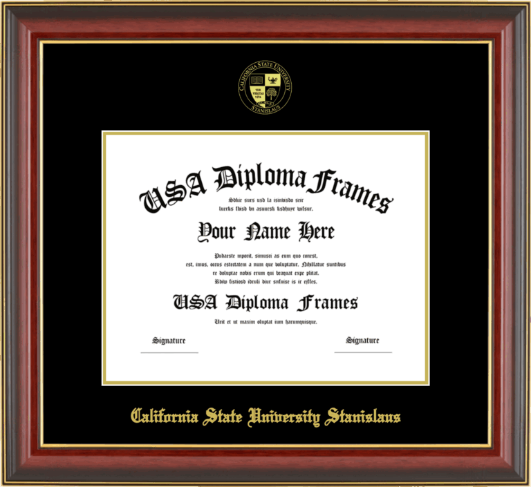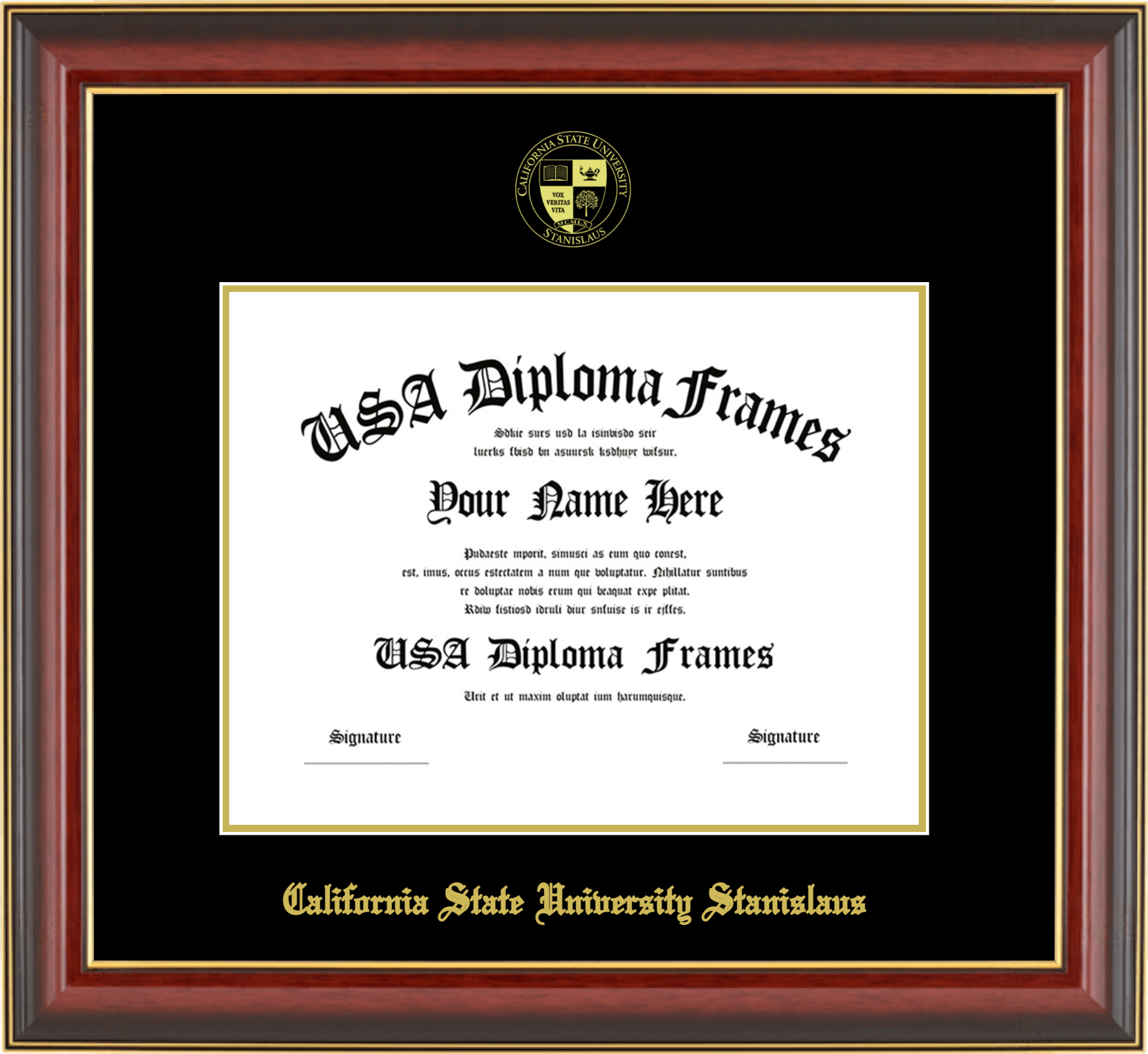 California State University Stanislaus Diploma Frame – Cherry Mahogany Gold Trim Glossy – Black and Gold Mat