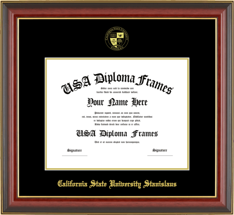 Want to explore more styles? Browse our full range of diploma frame layouts, or visit the California State University Stanislaus to view options available for your school. Looking for a fully personalized design? Try our custom Frame Builder and create a frame that’s uniquely yours.