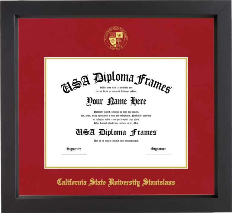 Want to explore more styles? Browse our full range of diploma frame layouts, or visit the California State University Stanislaus to view options available for your school. Looking for a fully personalized design? Try our custom Frame Builder and create a frame that’s uniquely yours.