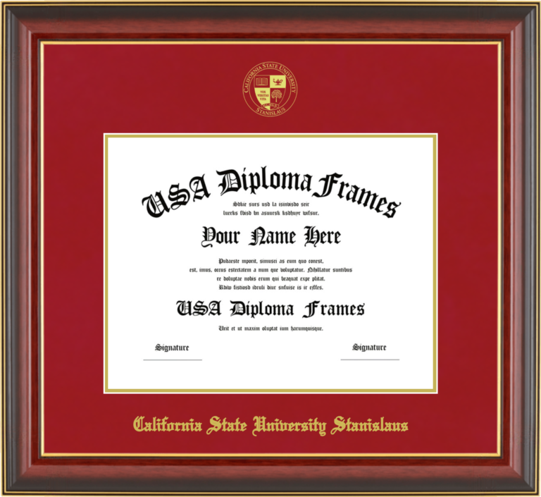 Want to explore more styles? Browse our full range of diploma frame layouts, or visit the California State University Stanislaus to view options available for your school. Looking for a fully personalized design? Try our custom Frame Builder and create a frame that’s uniquely yours.