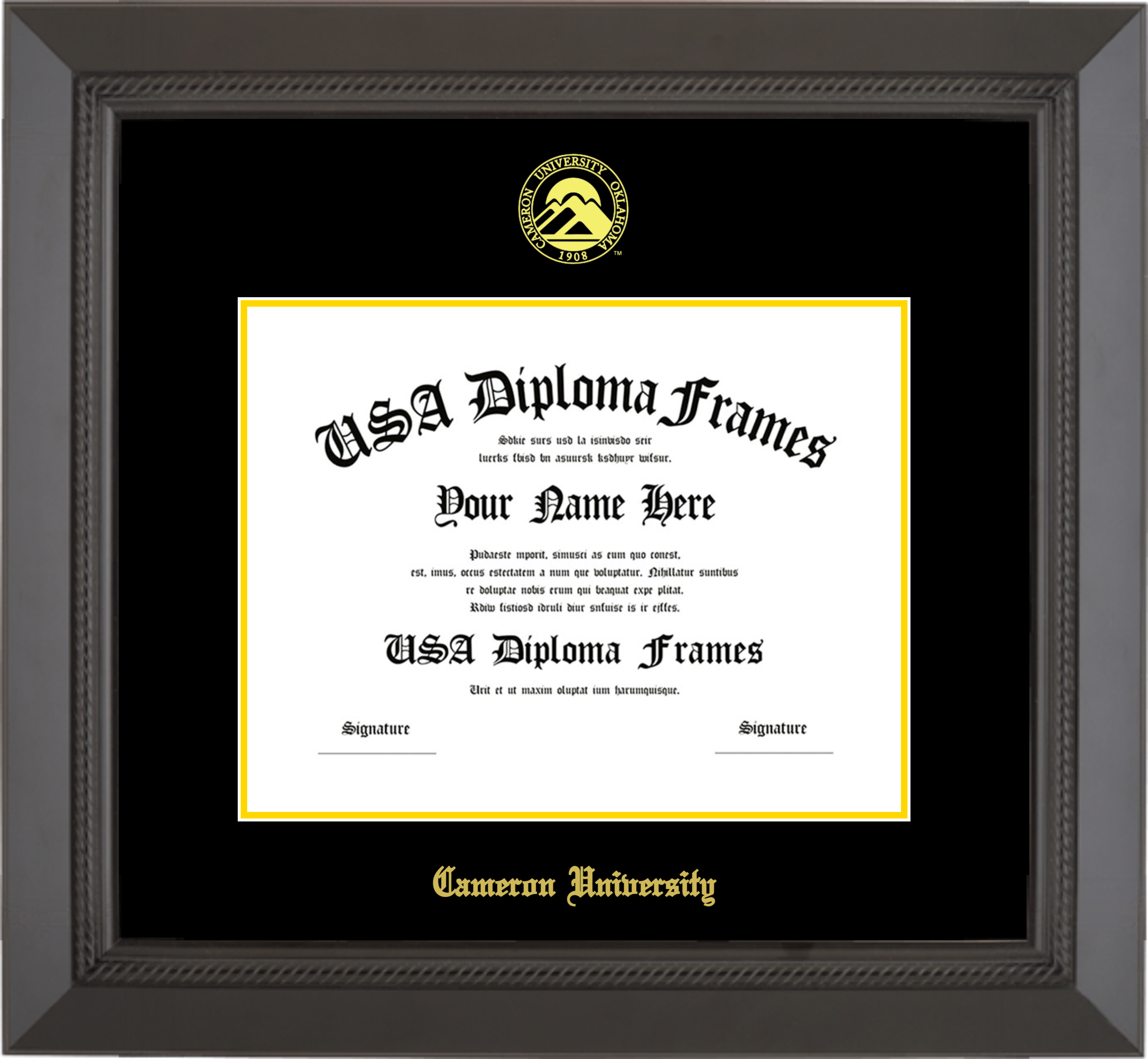Cameron University Diploma Frame – Black Rope – Black and Yellow Gold Mat