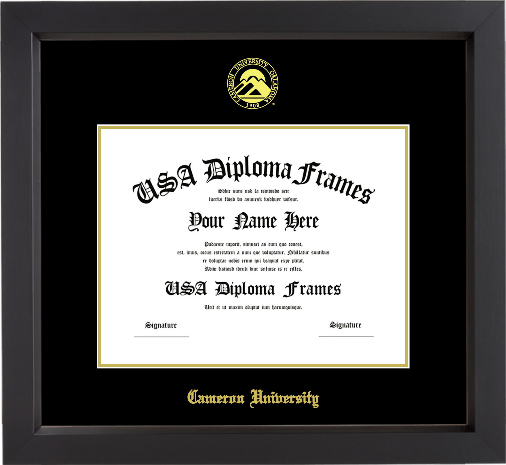 Cameron University Diploma Frame – Black Matte – Black and Gold Mat