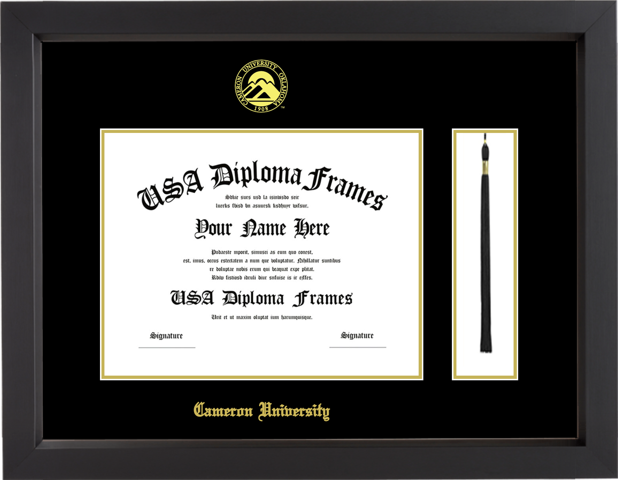 Cameron University Diploma Frame with Tassel – Black Matte – Black and Gold Mat