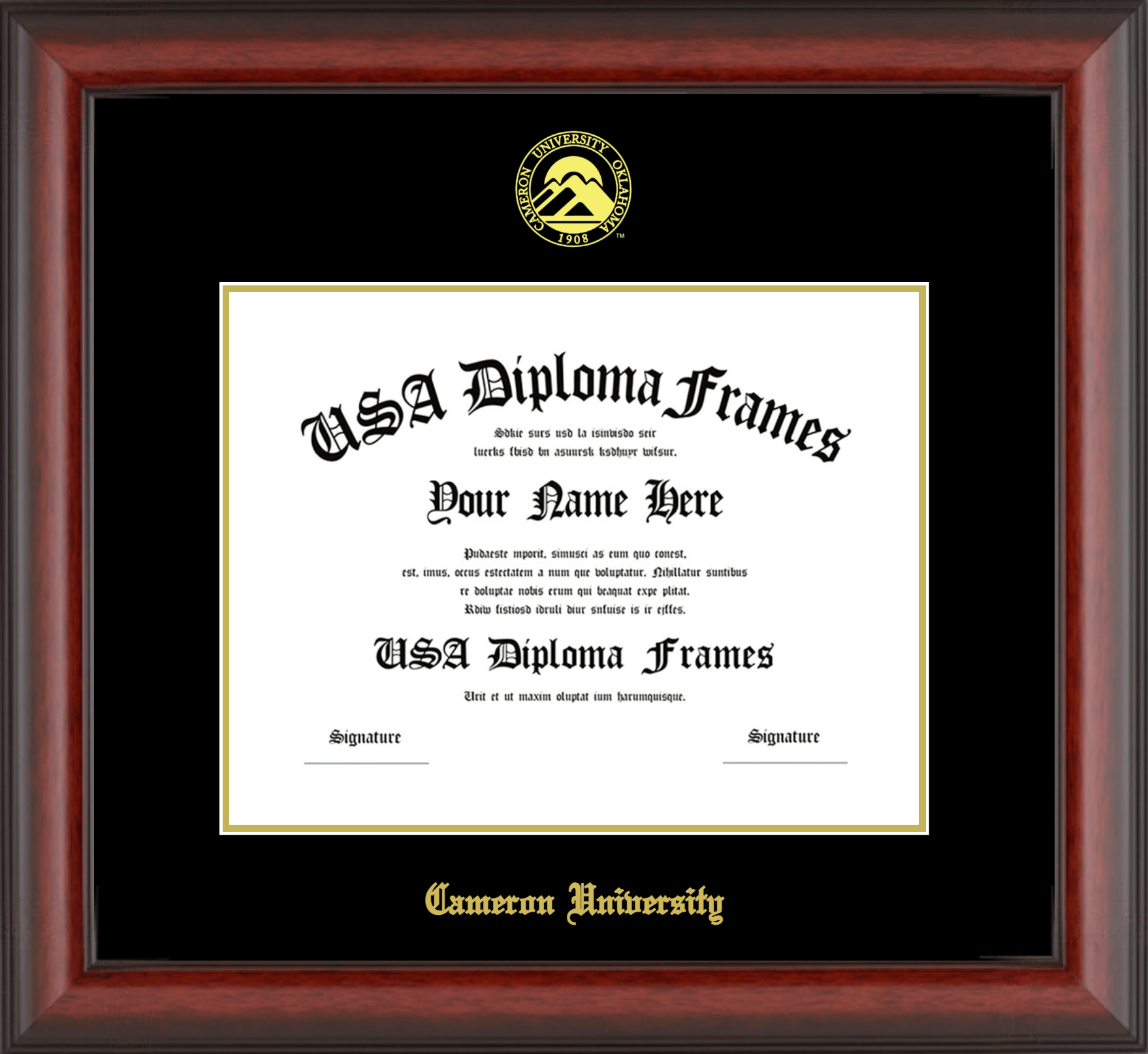 Cameron University Diploma Frame – Cherry Mahogany Matte – Black and Gold Mat