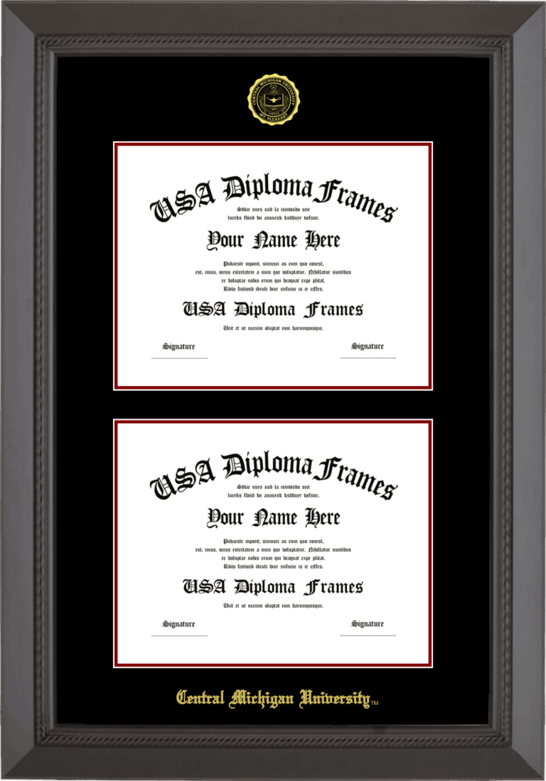 Central Michigan University Double Diploma Frame – Double Document – Black Rope – Black and Maroon Mat