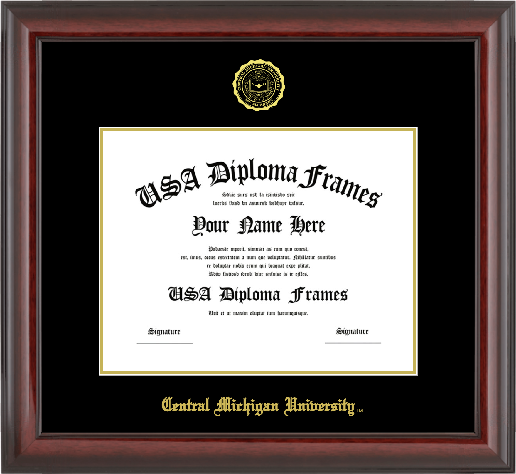 Central Michigan University Diploma Frame – Cherry Mahogany Glossy – Black and Gold Mat