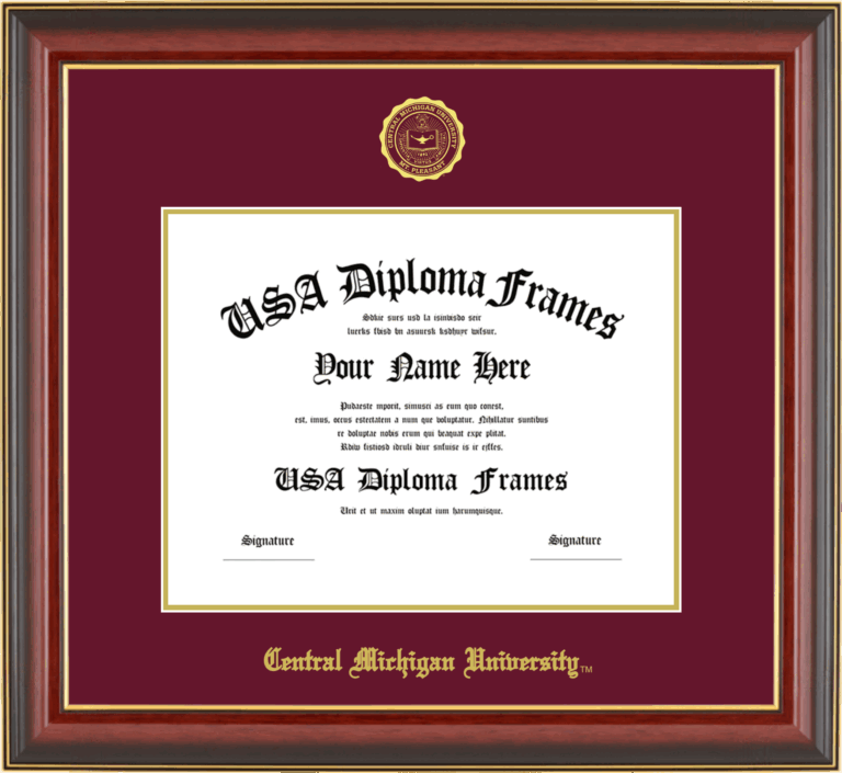Want to explore more styles? Browse our full range of diploma frame layouts, or visit the Central Michigan University to view options available for your school. Looking for a fully personalized design? Try our custom Frame Builder and create a frame that’s uniquely yours.