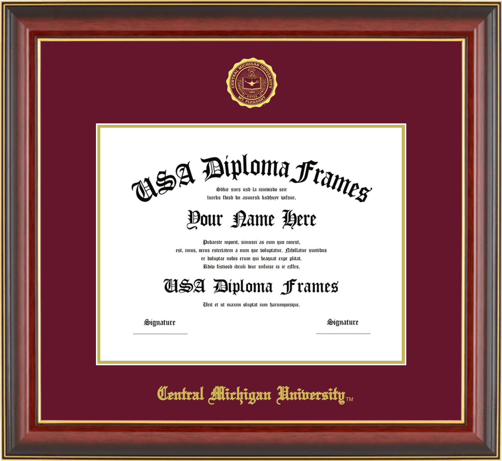 Central Michigan University Diploma Frame – Cherry Mahogany Gold Trim Glossy – Maroon and Gold Mat